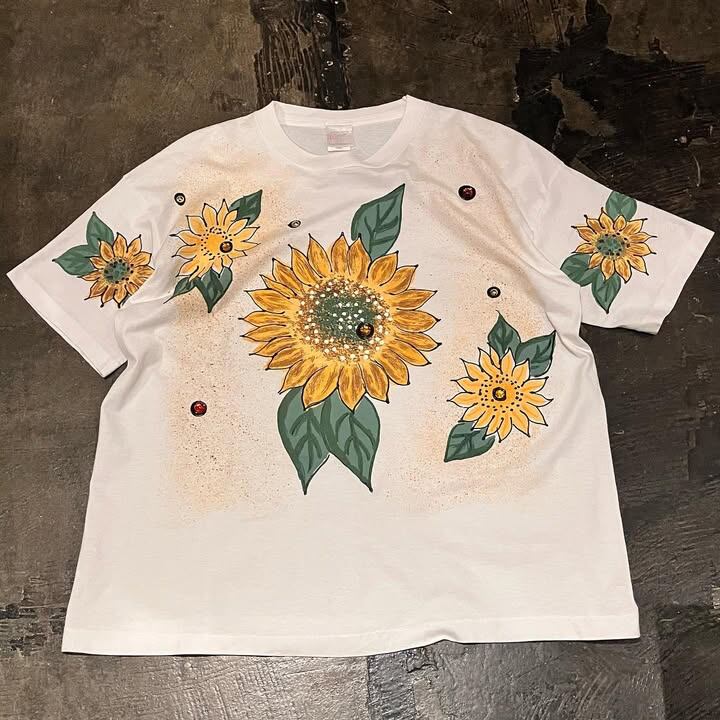 袖まで入る手描きひまわりが素敵なTシャツ。