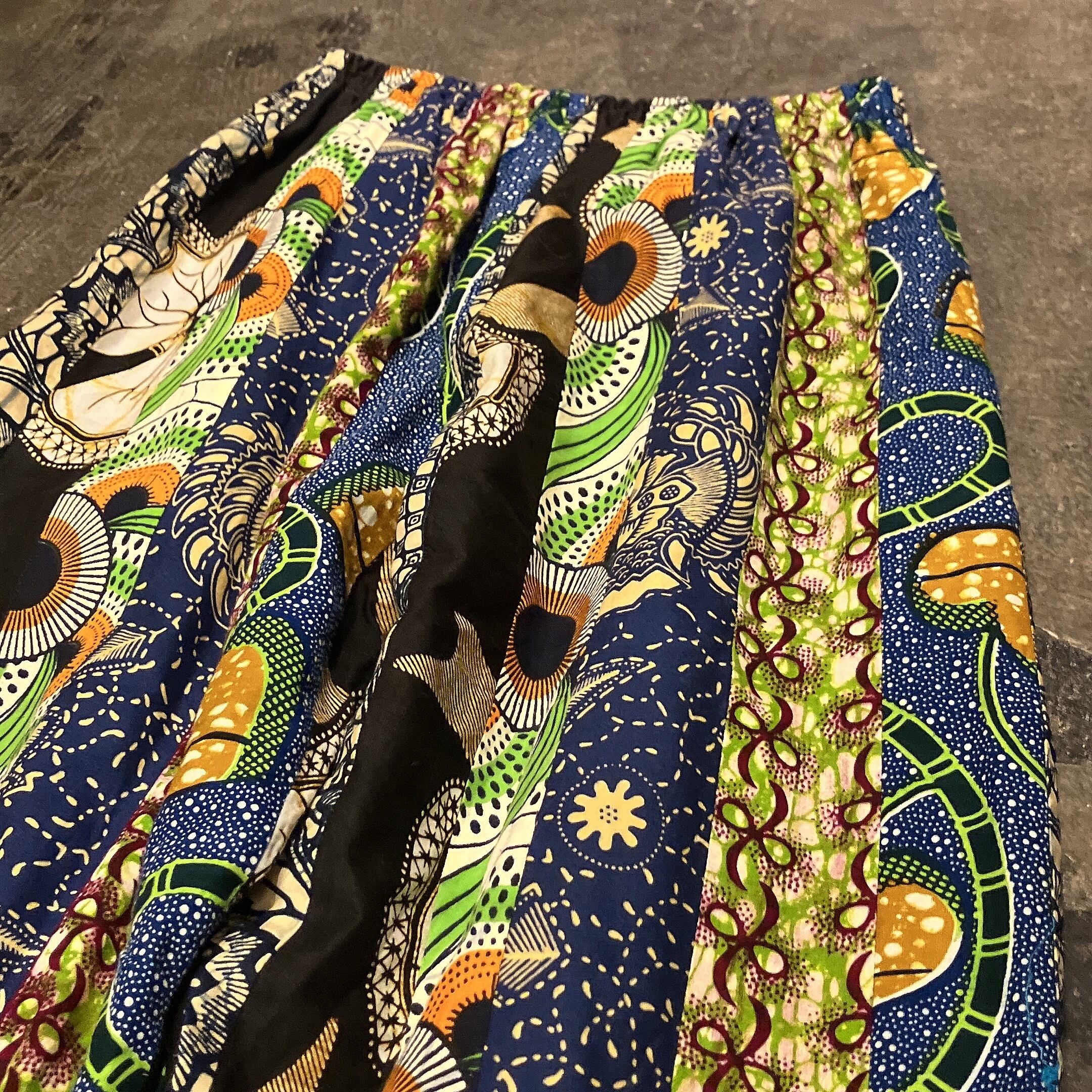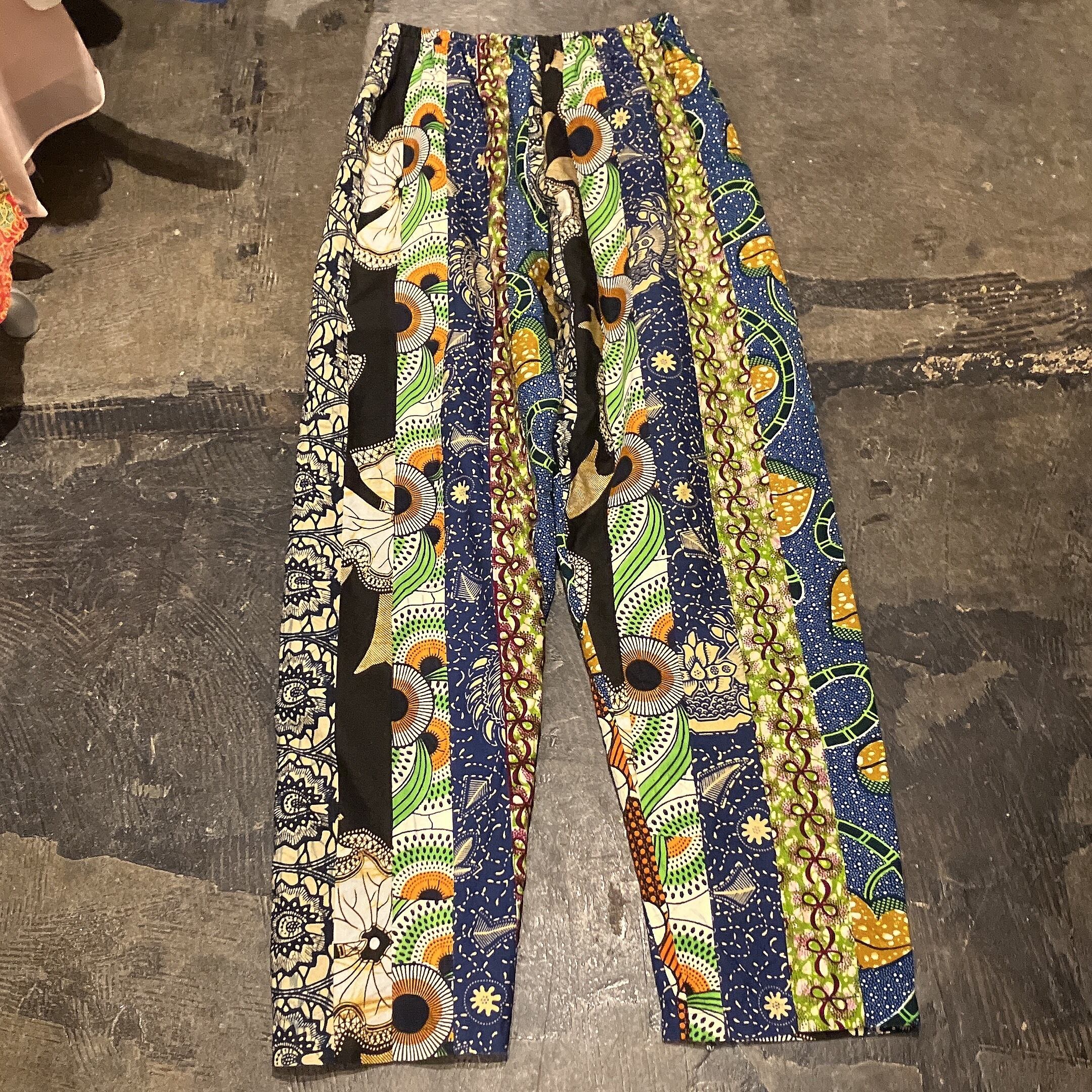 色んなバティック柄が細長くパッチワークされたイージーパンツです。