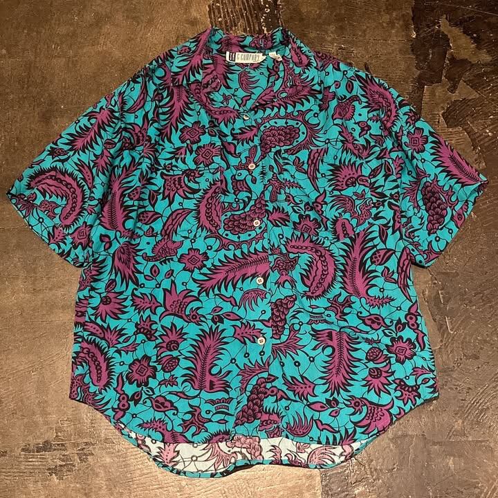 柄シャツの中でも中々人とかぶらない個性を放つオープンカラーシャツです。