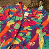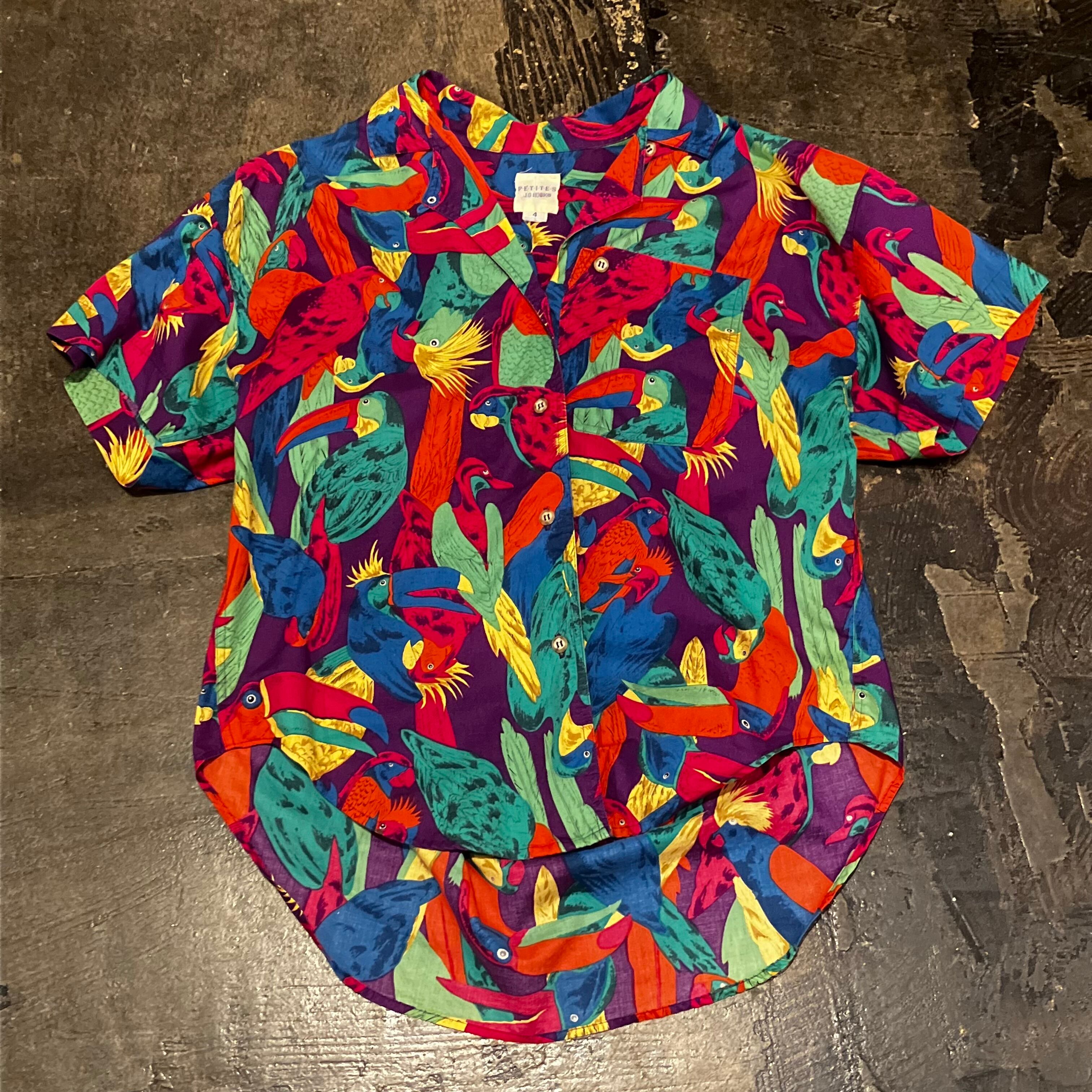カラフルなオウムがなどの鳥達がたくさんのコットンシャツ。