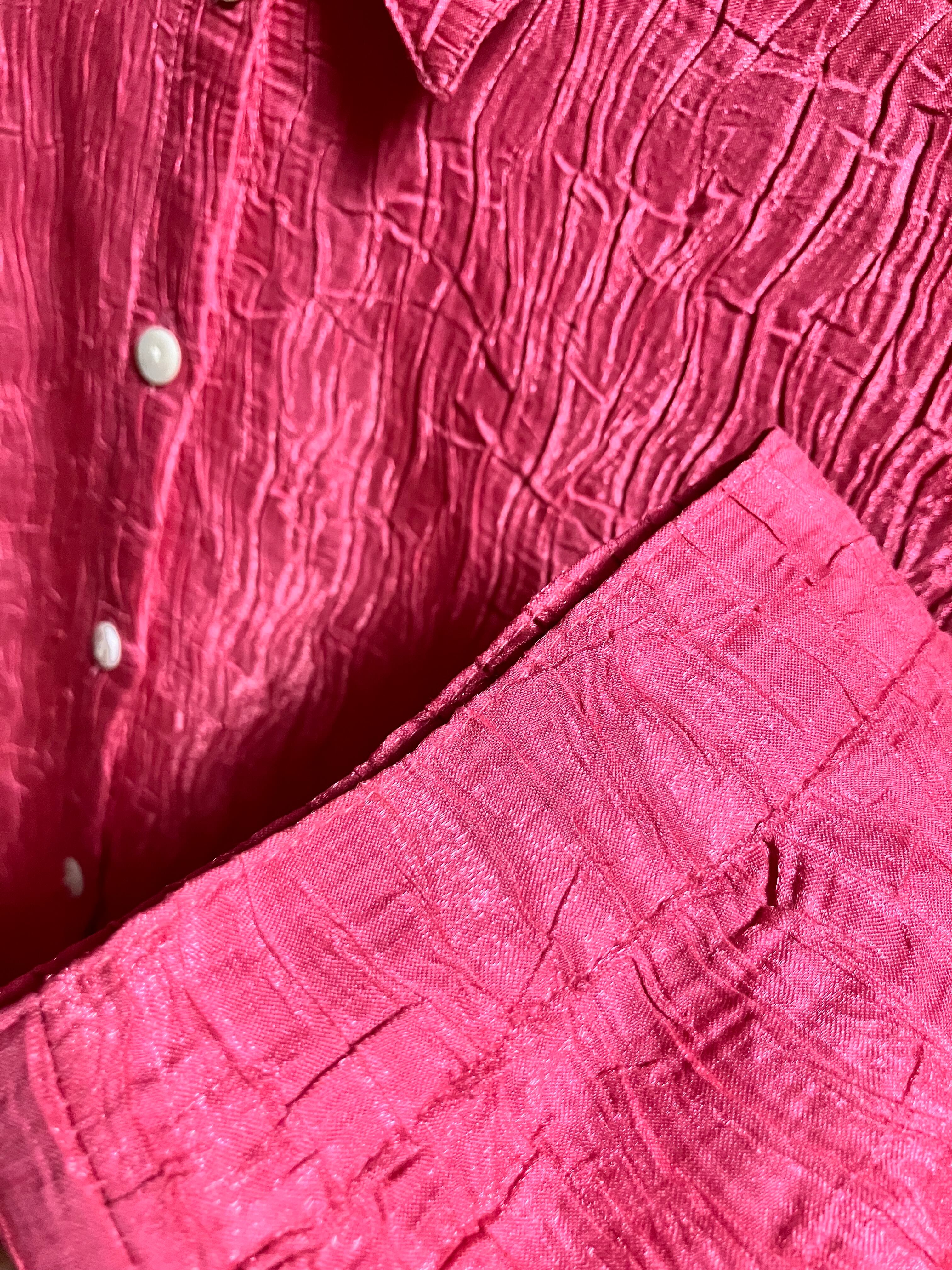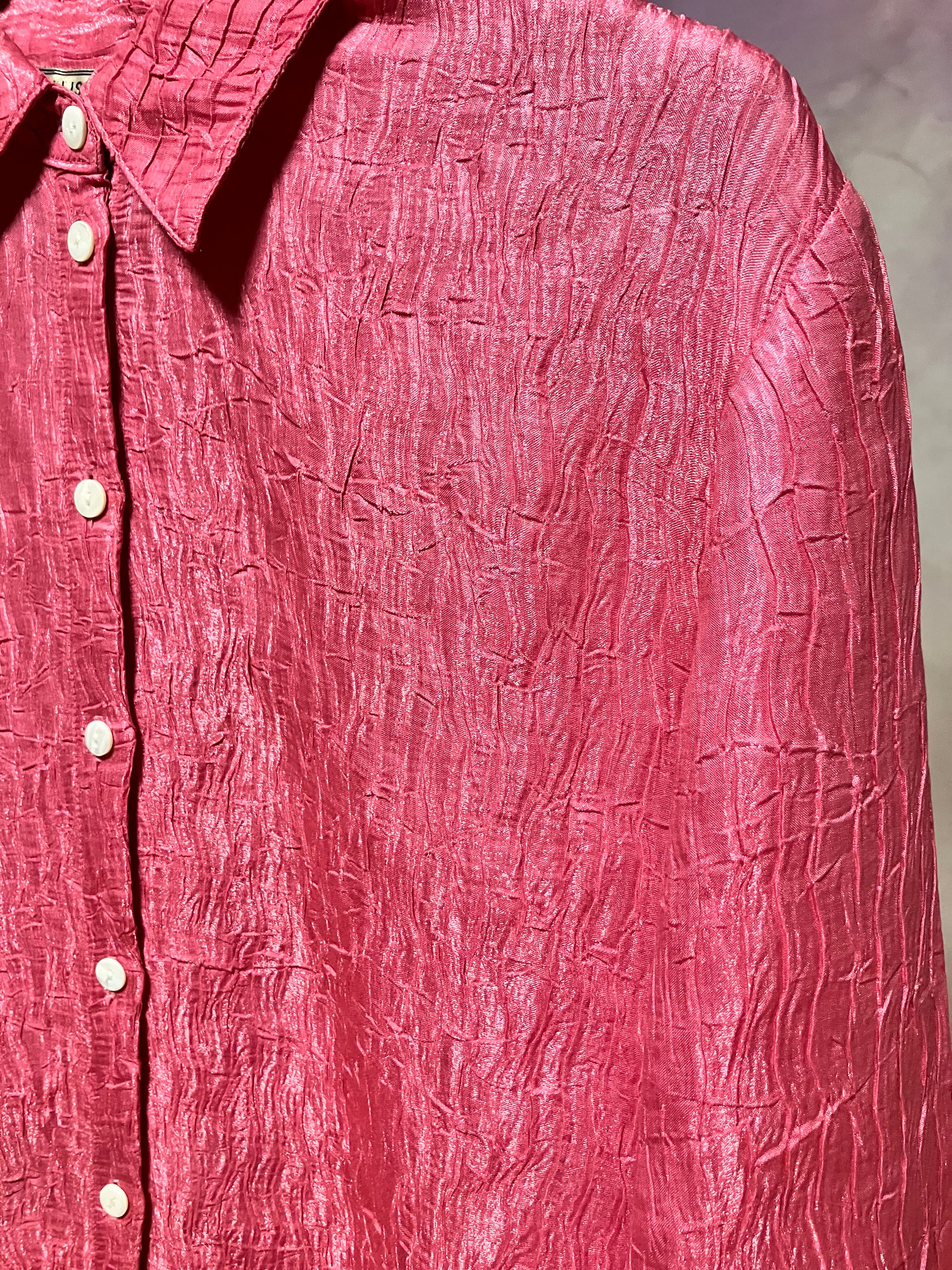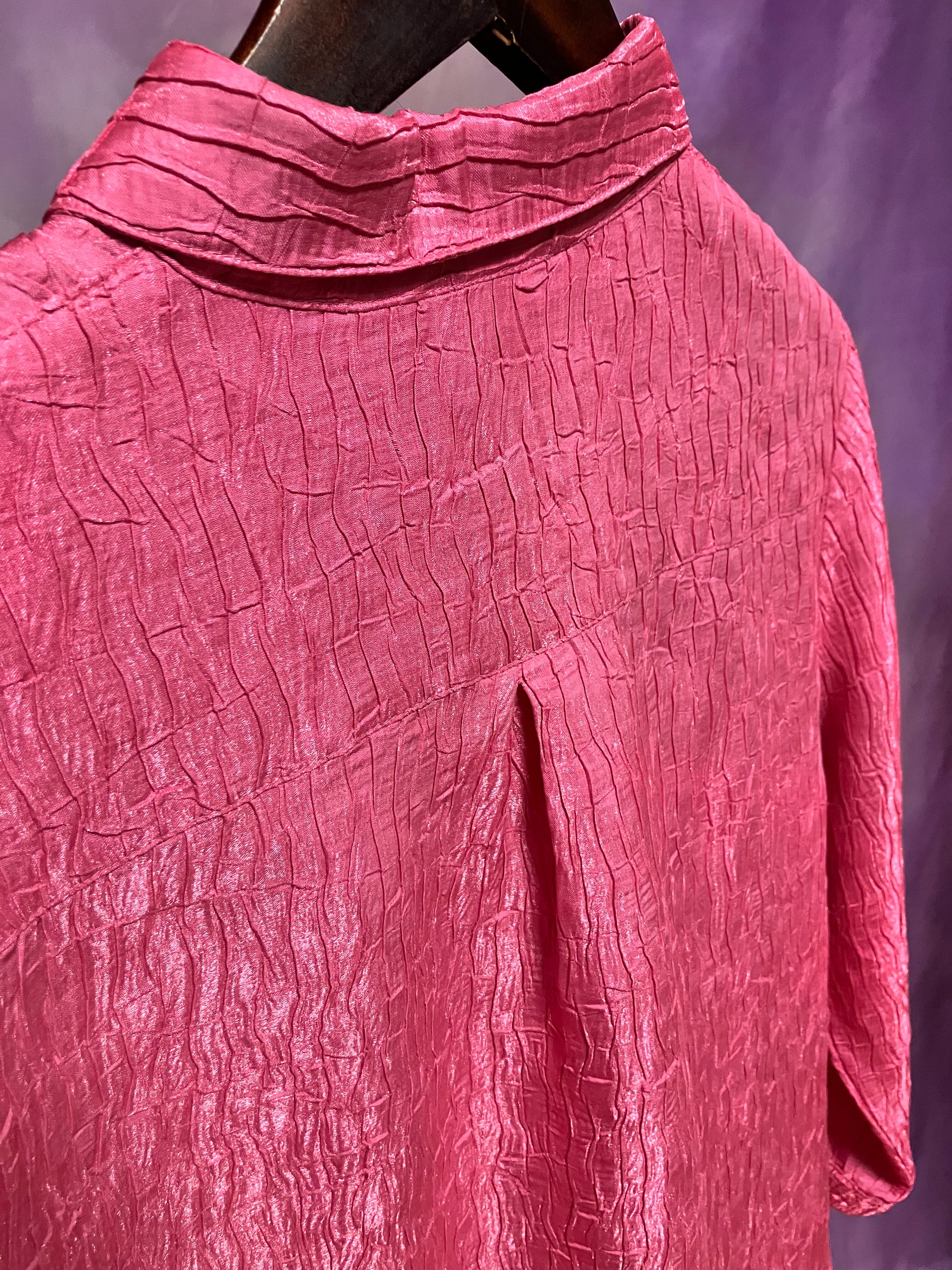 crinkle slit shirt "hot pink"