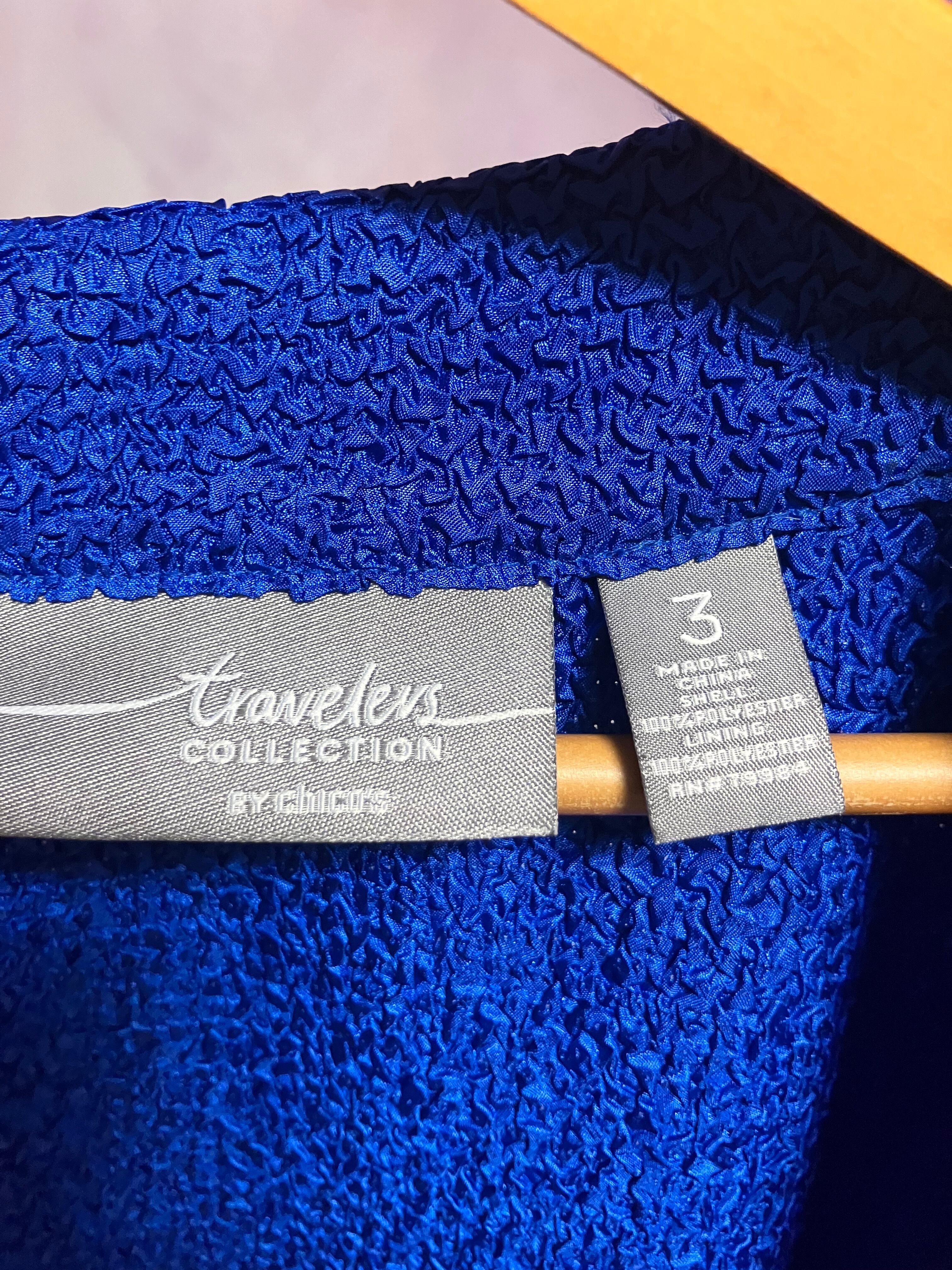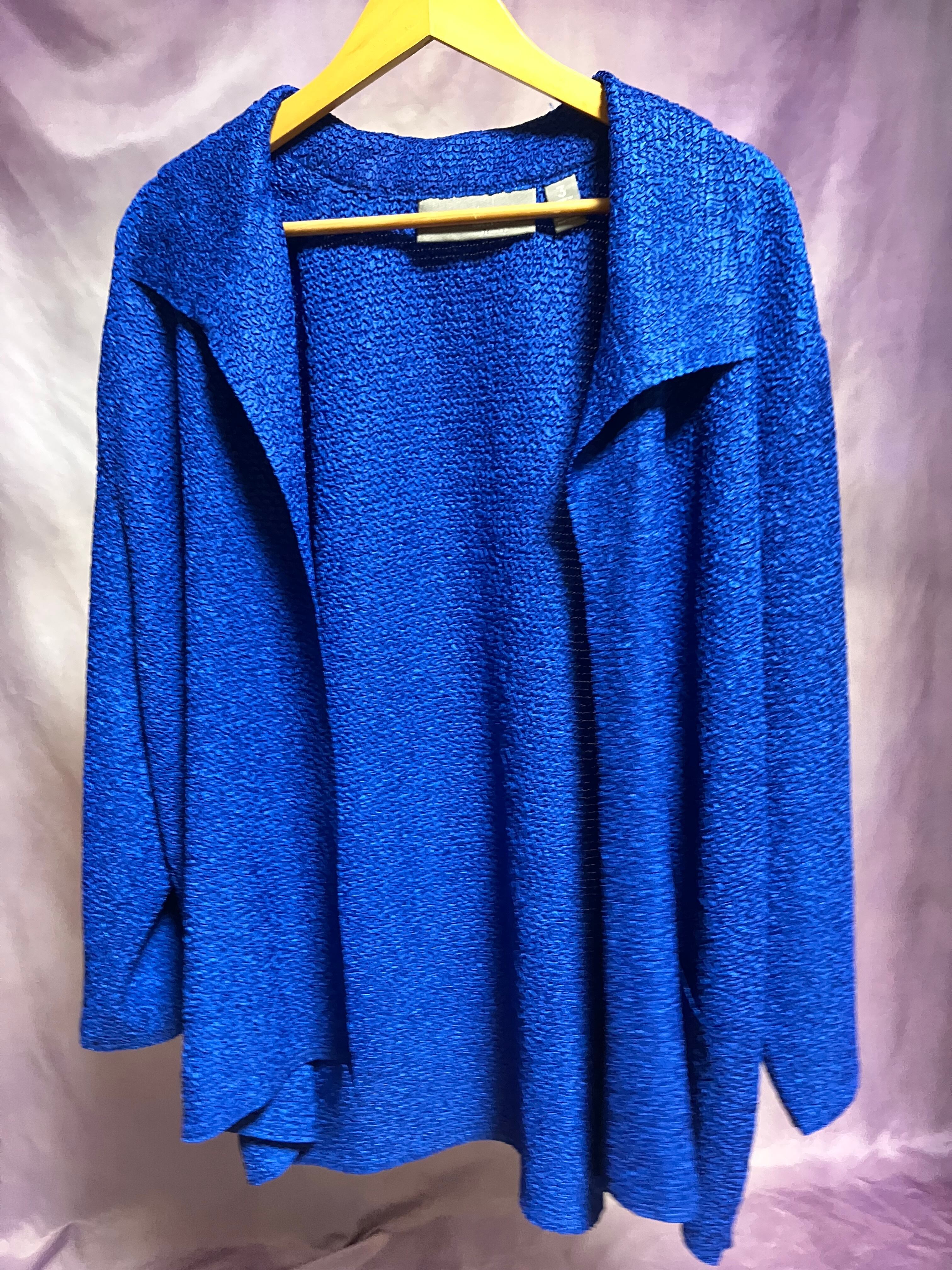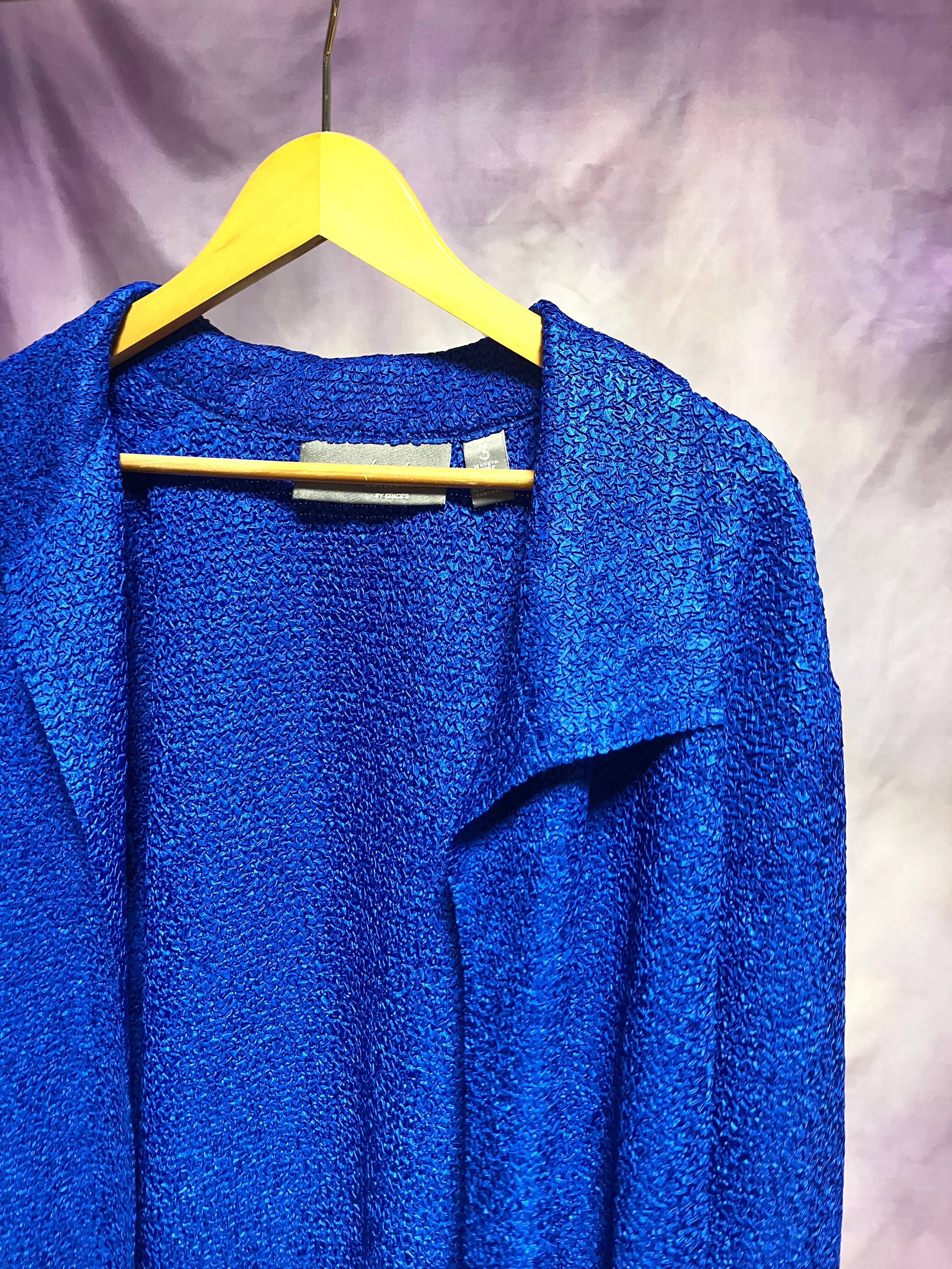 CHICO'Sのノーボタンのクリンクルカーディガン。