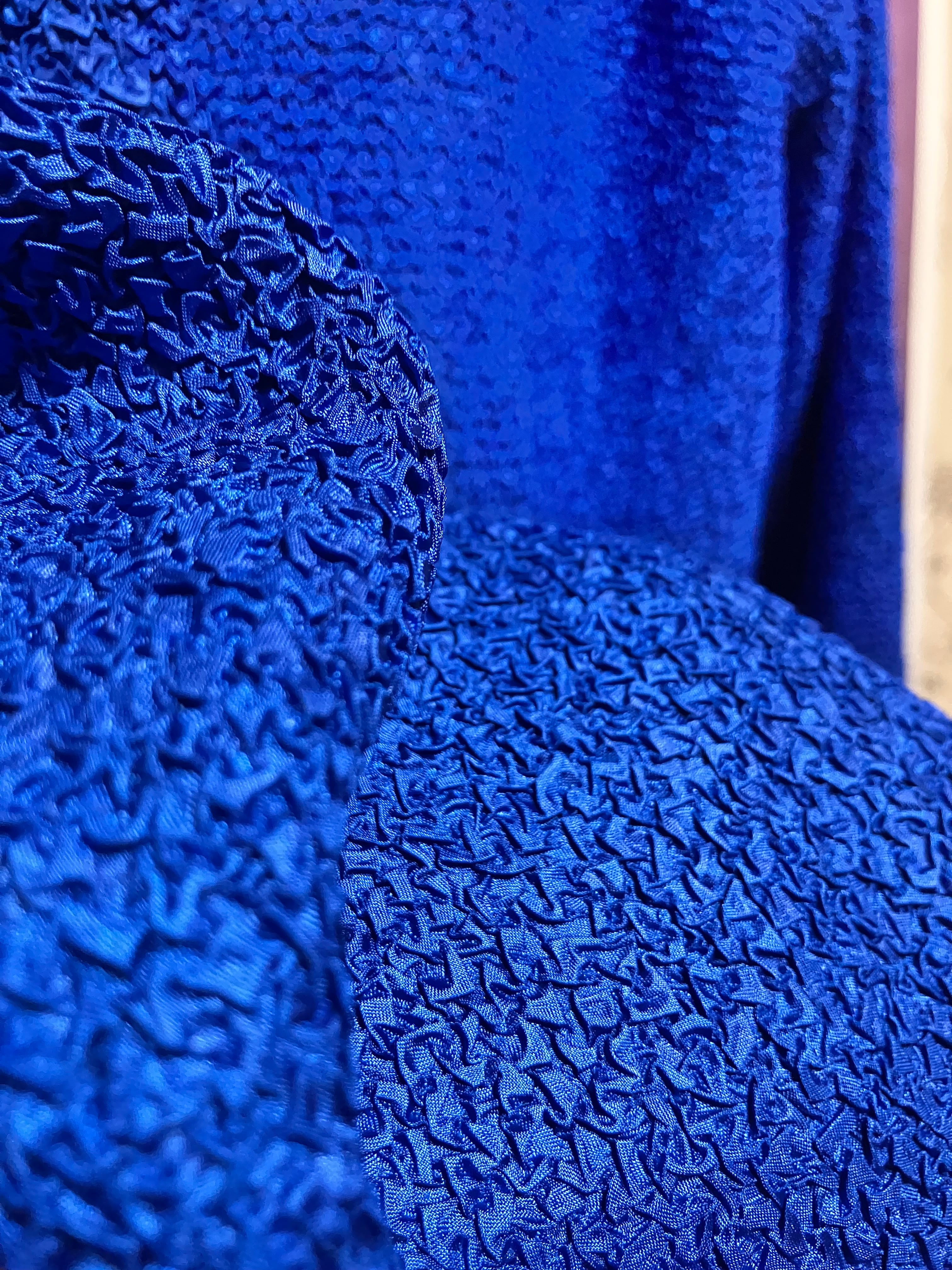 潔いブルーが氣持ちいい1着。秋もpopに色で遊んでいきましょう。