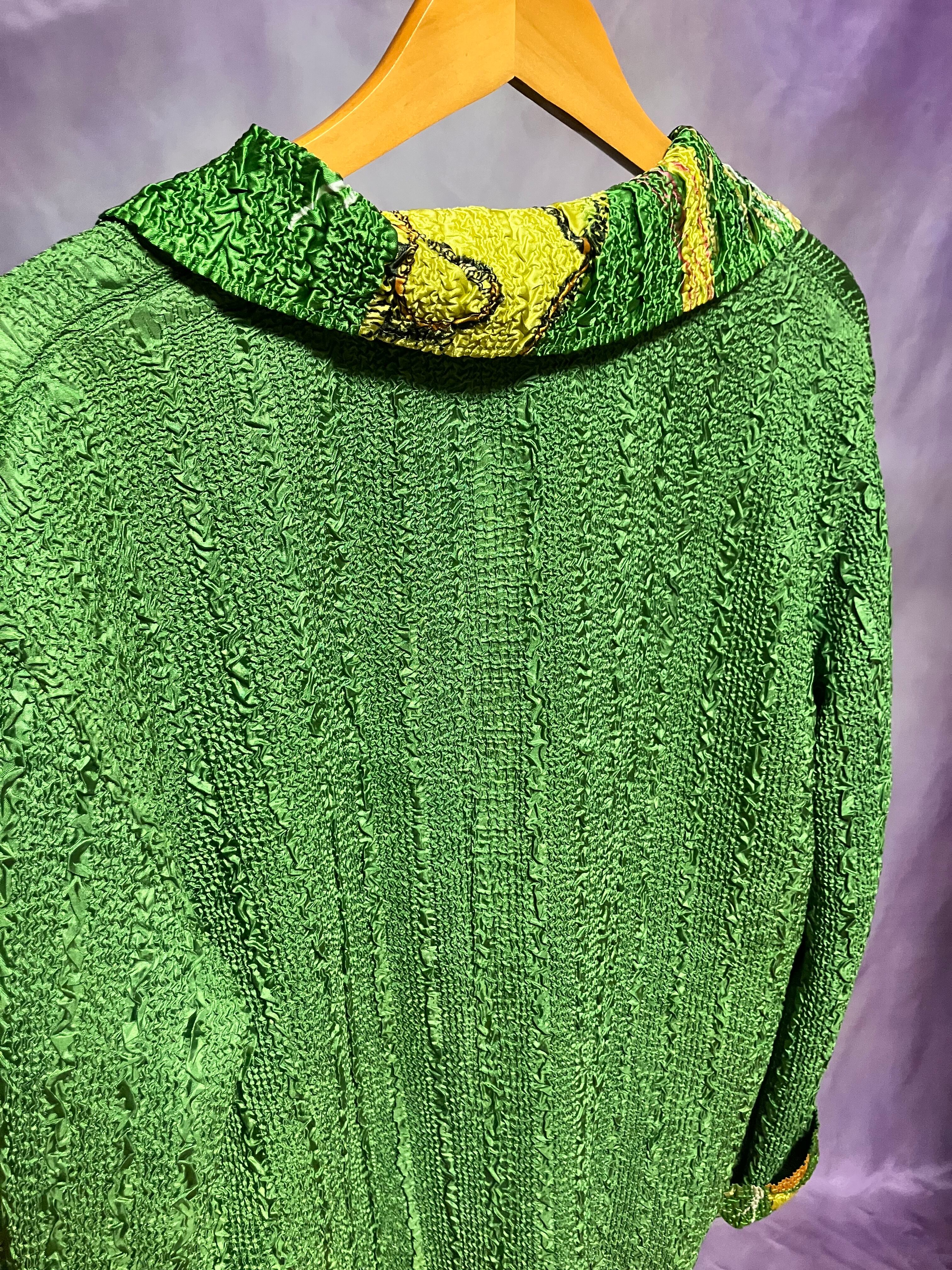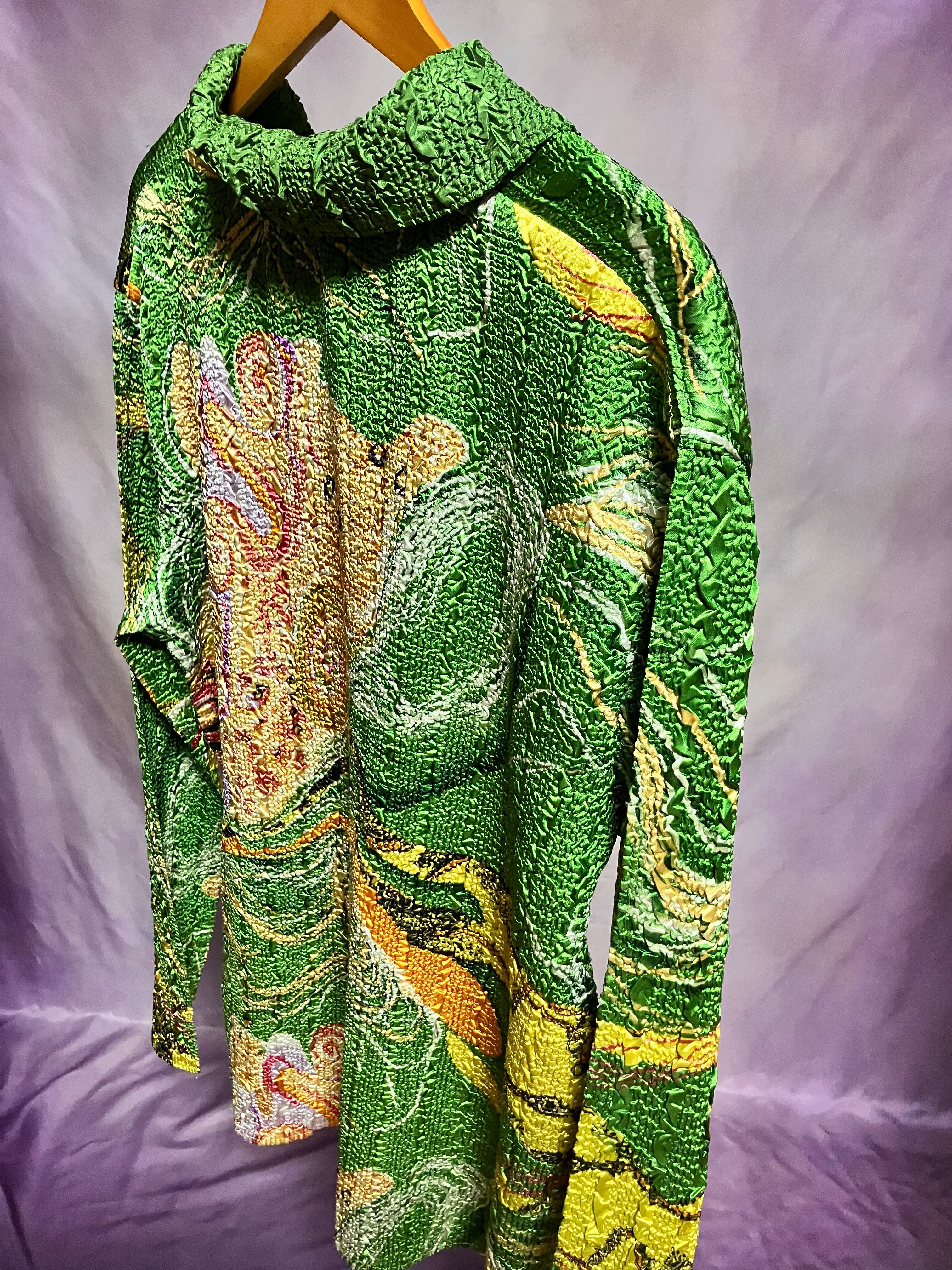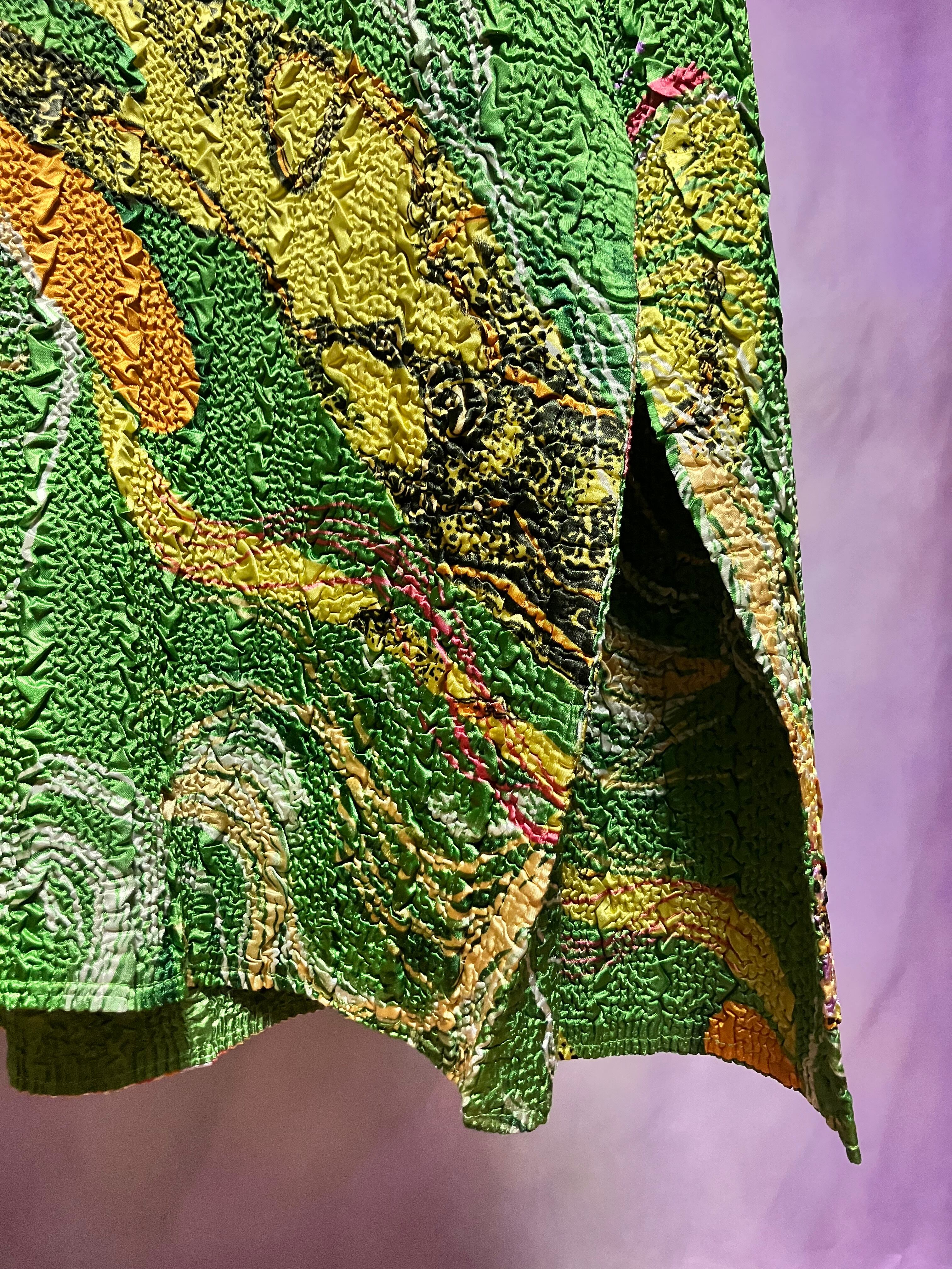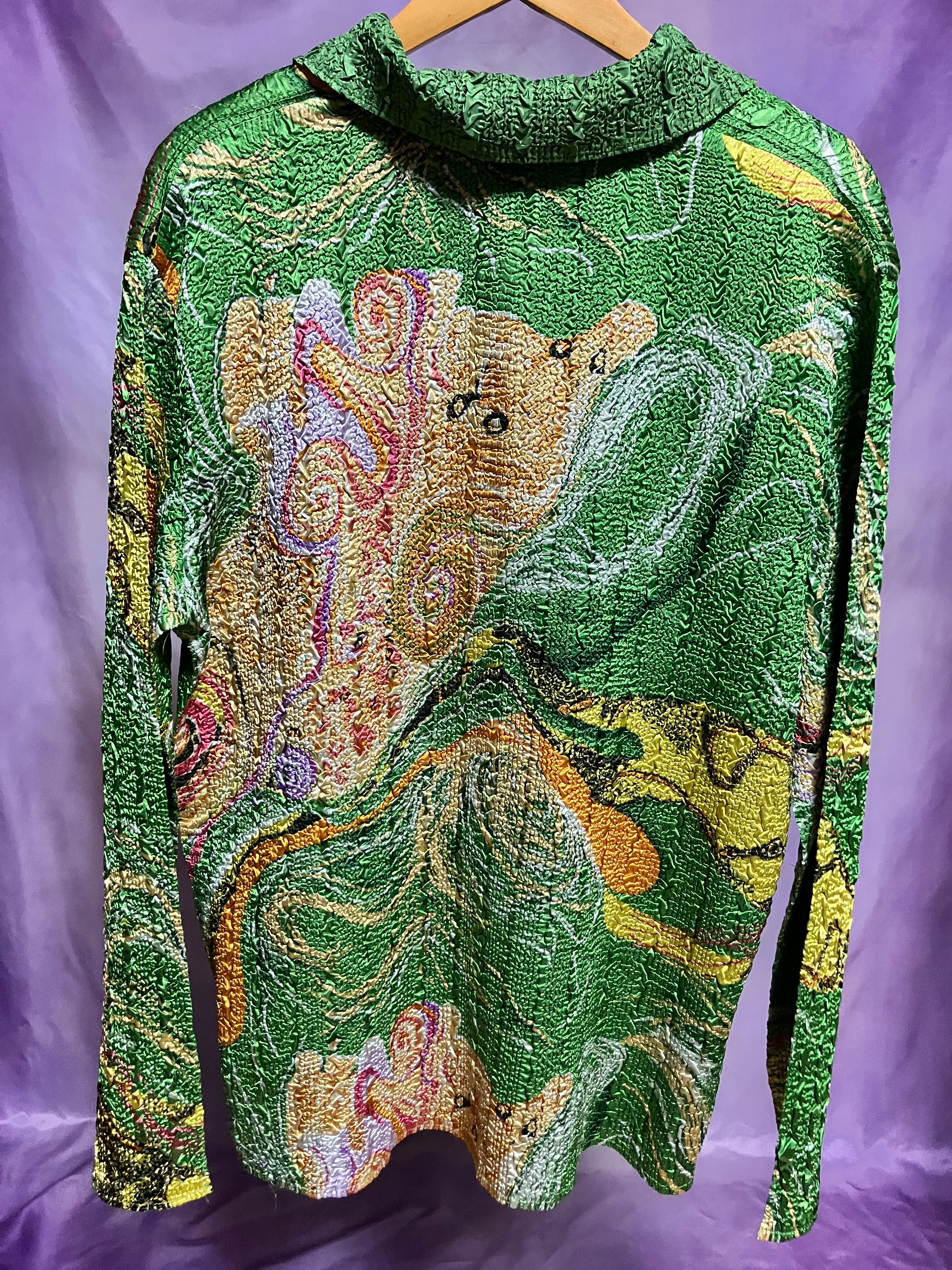 無地面は光沢グリーン。逆面はマーブル模様のような抽象的な柄が重なります。