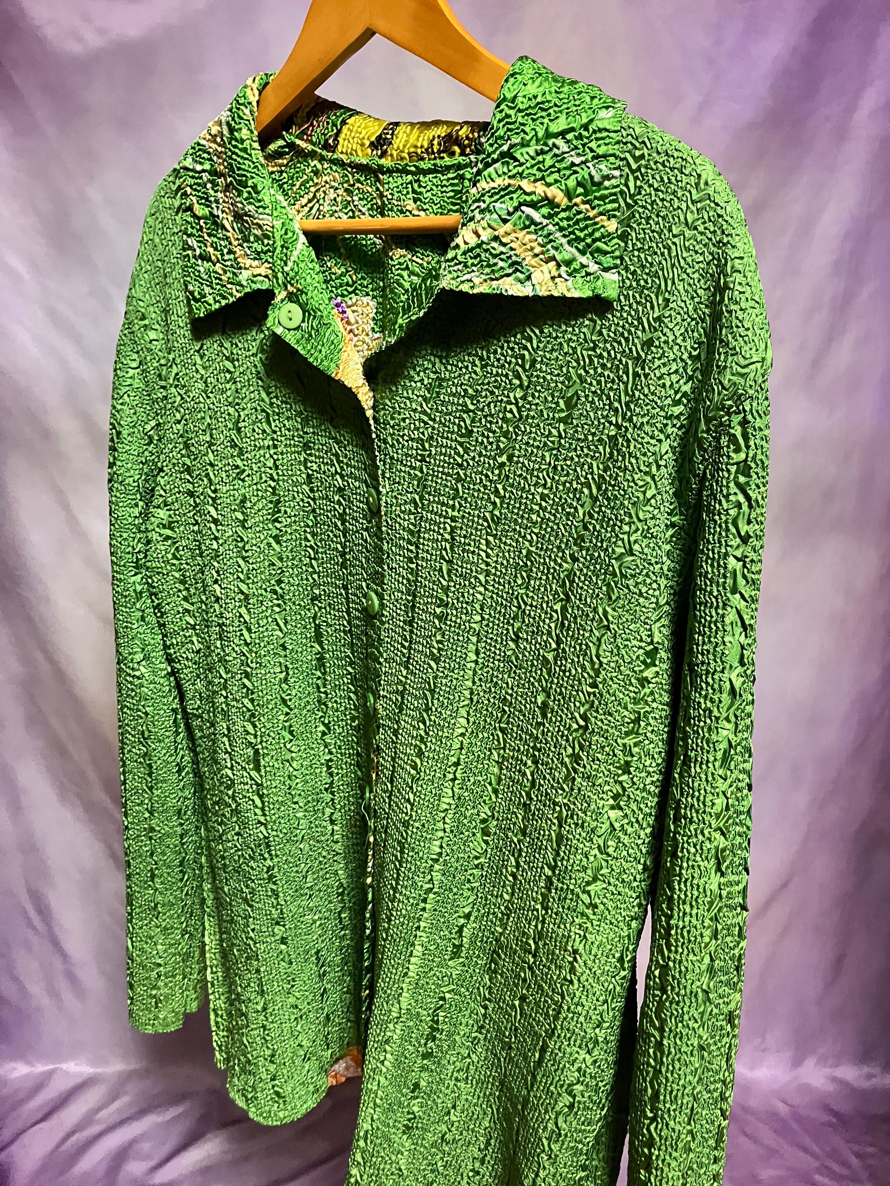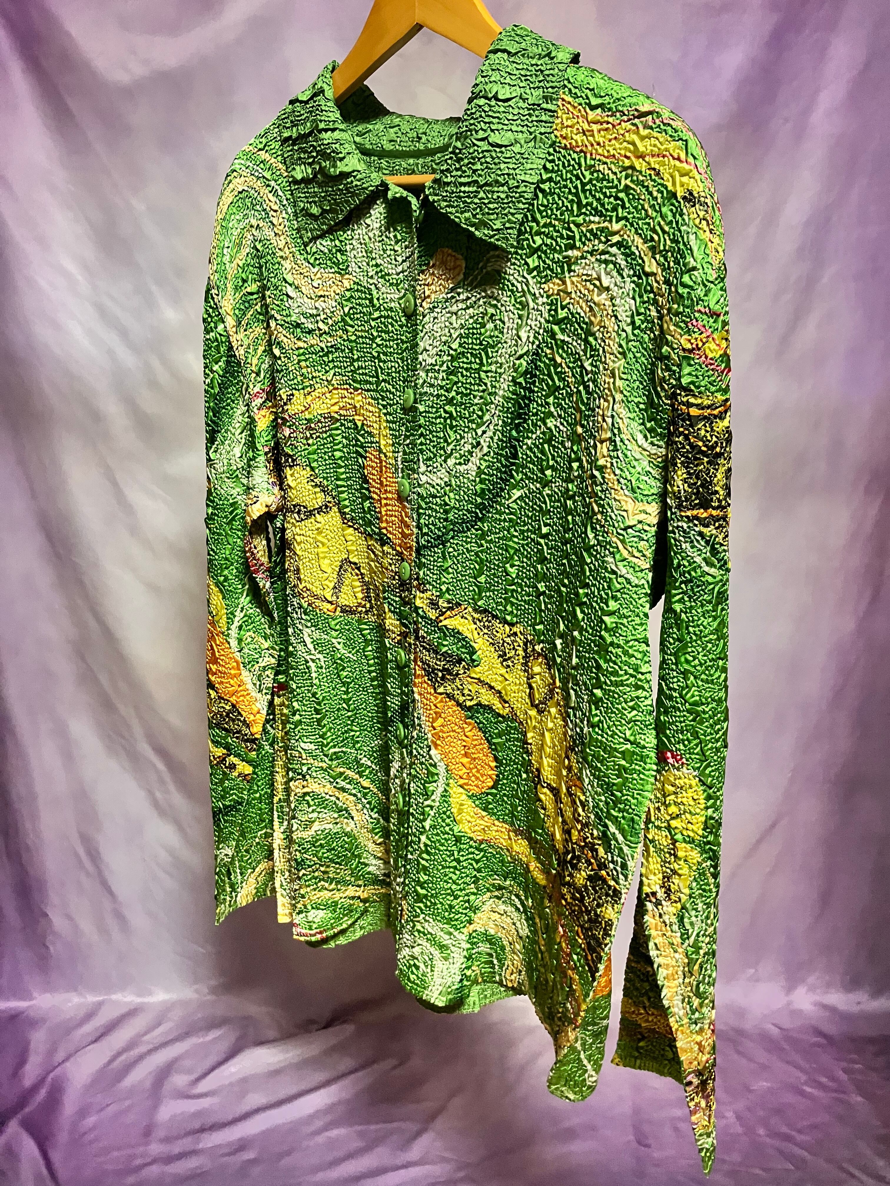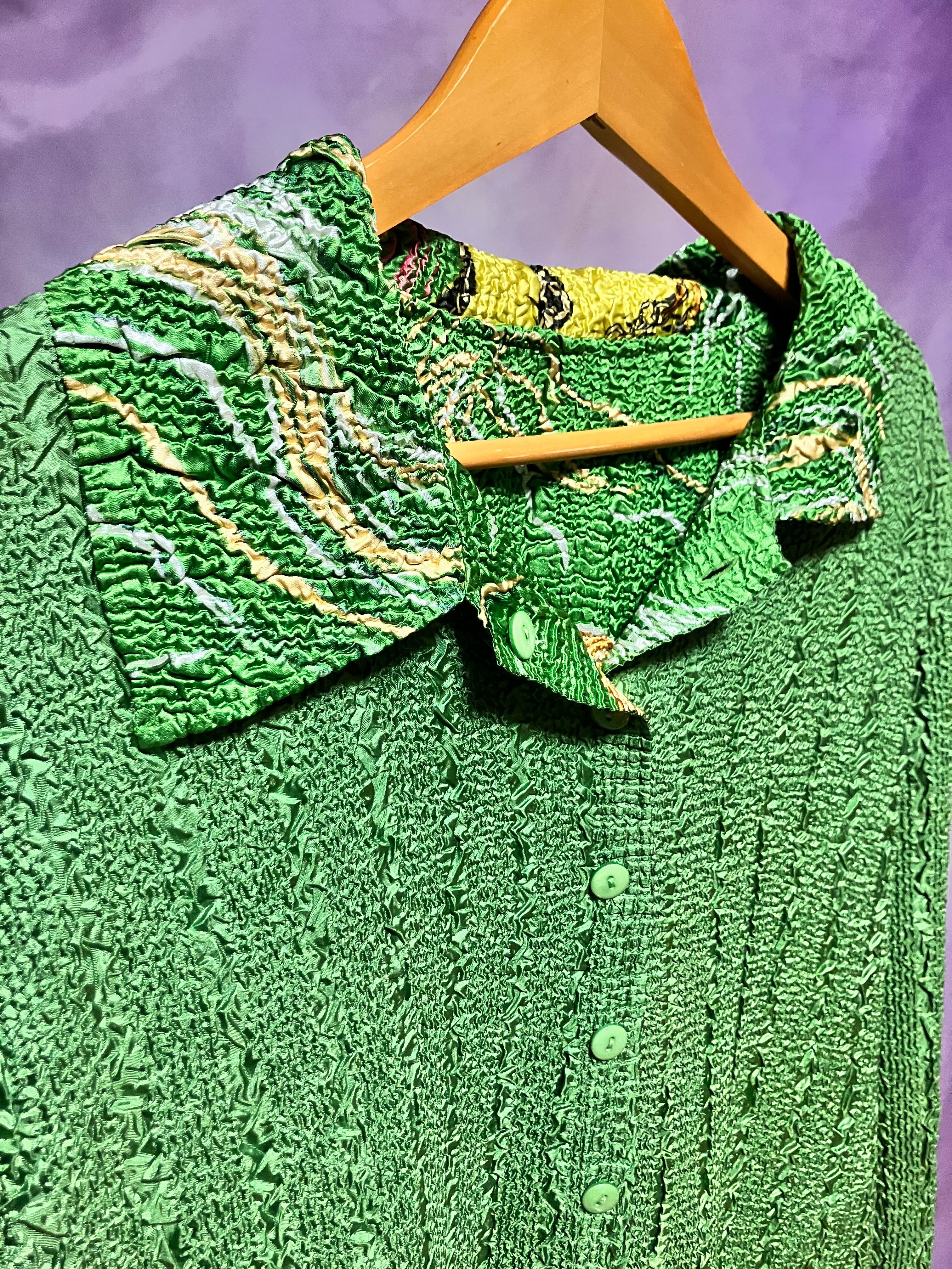 大きさ違いのクリンクルがストライプ状で表現されたリバーシブルシャツジャケット。