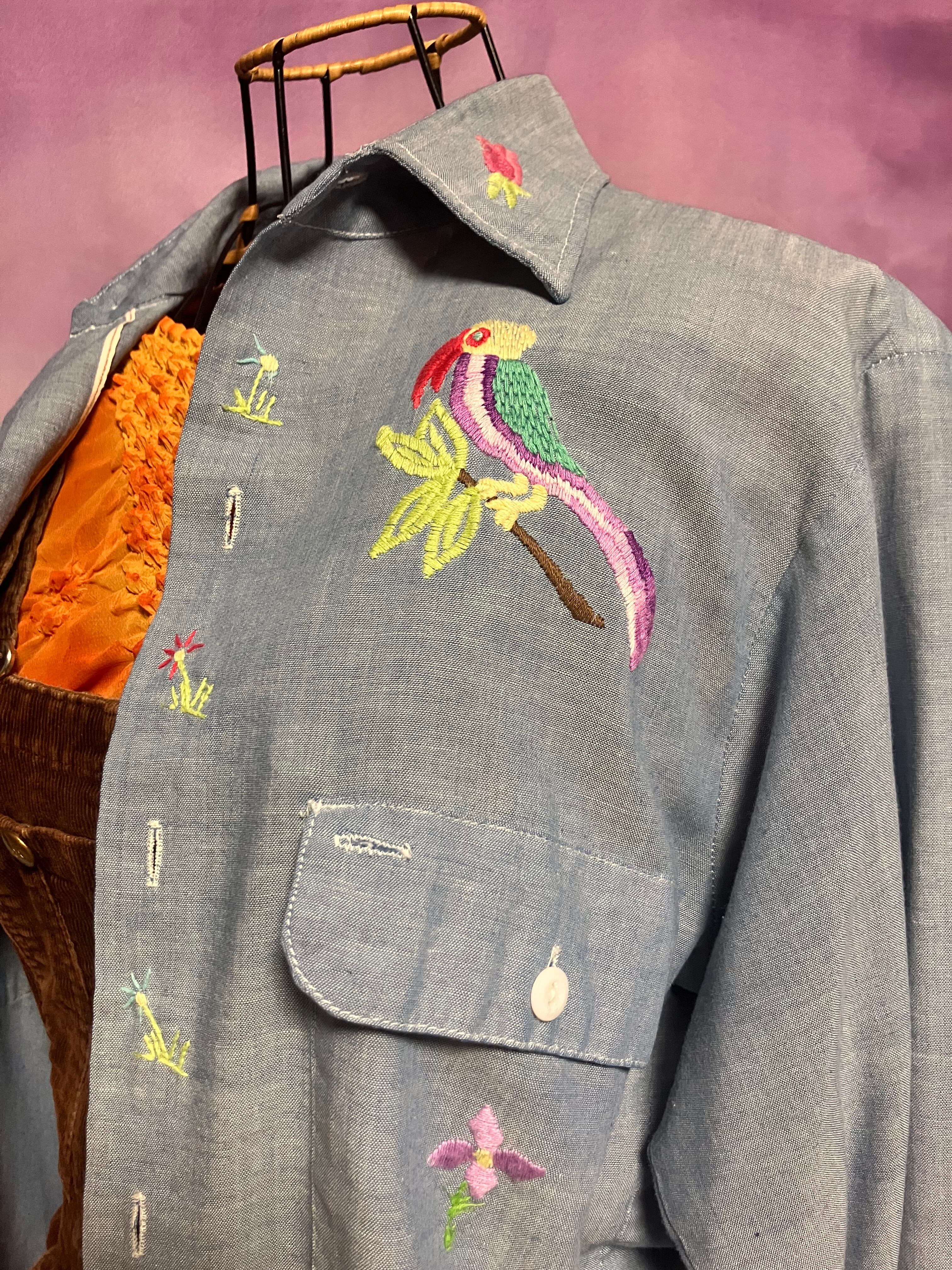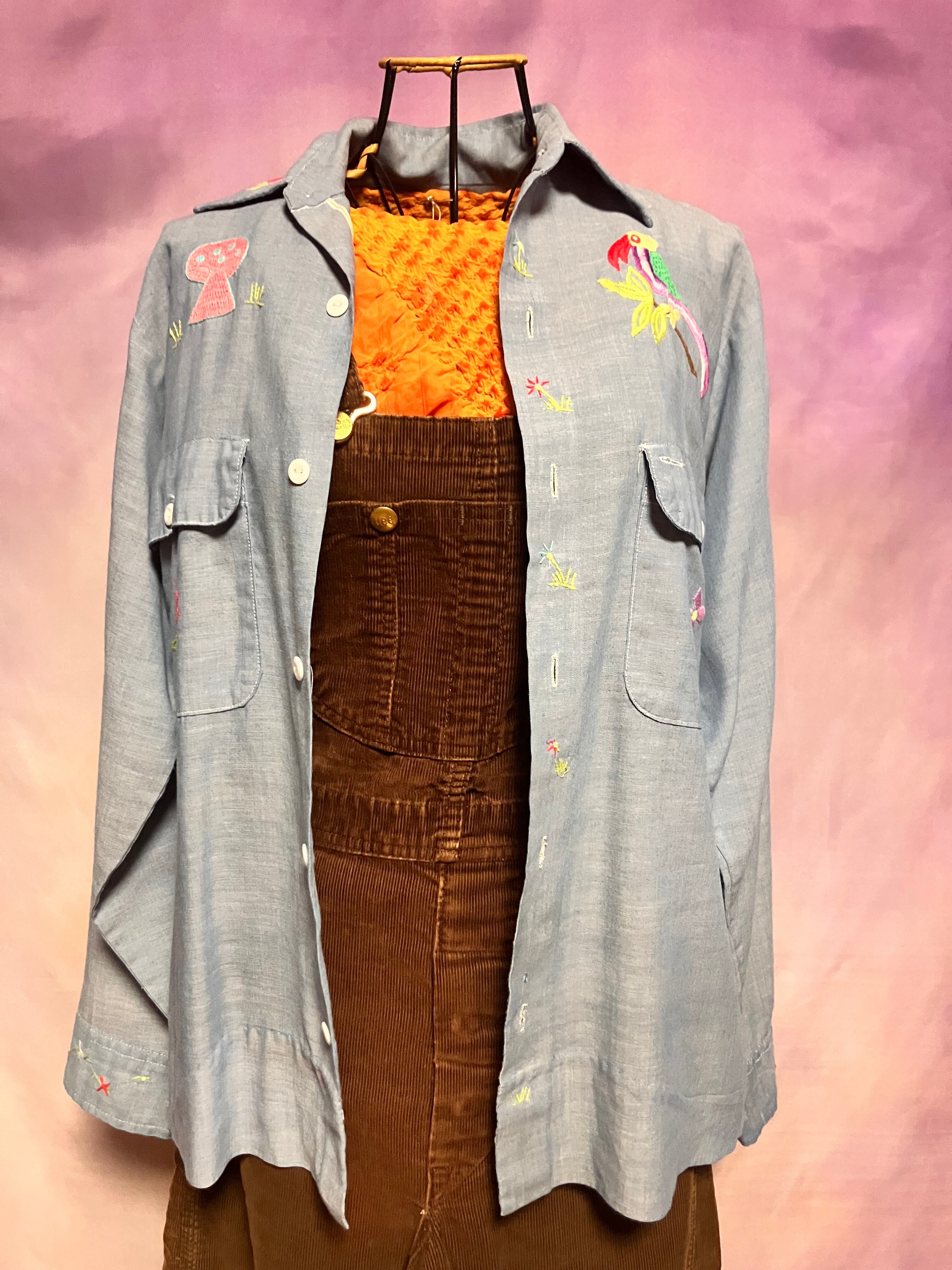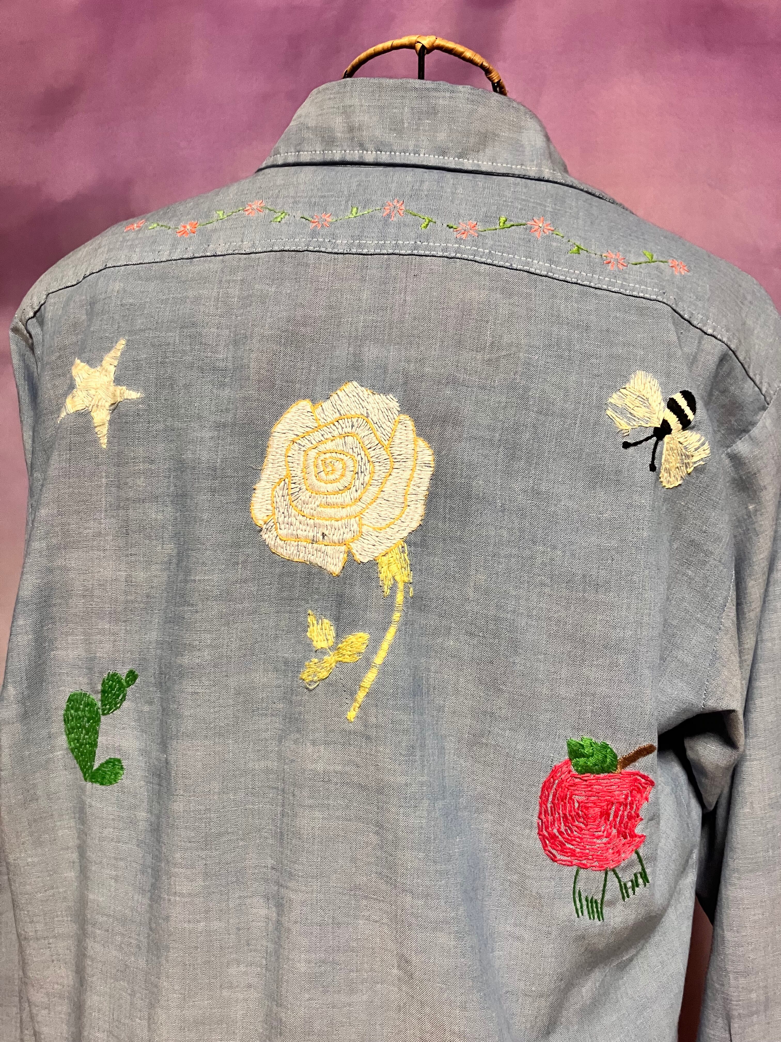 70's BIG MAC JCPenny hand embroidery chambray shirt