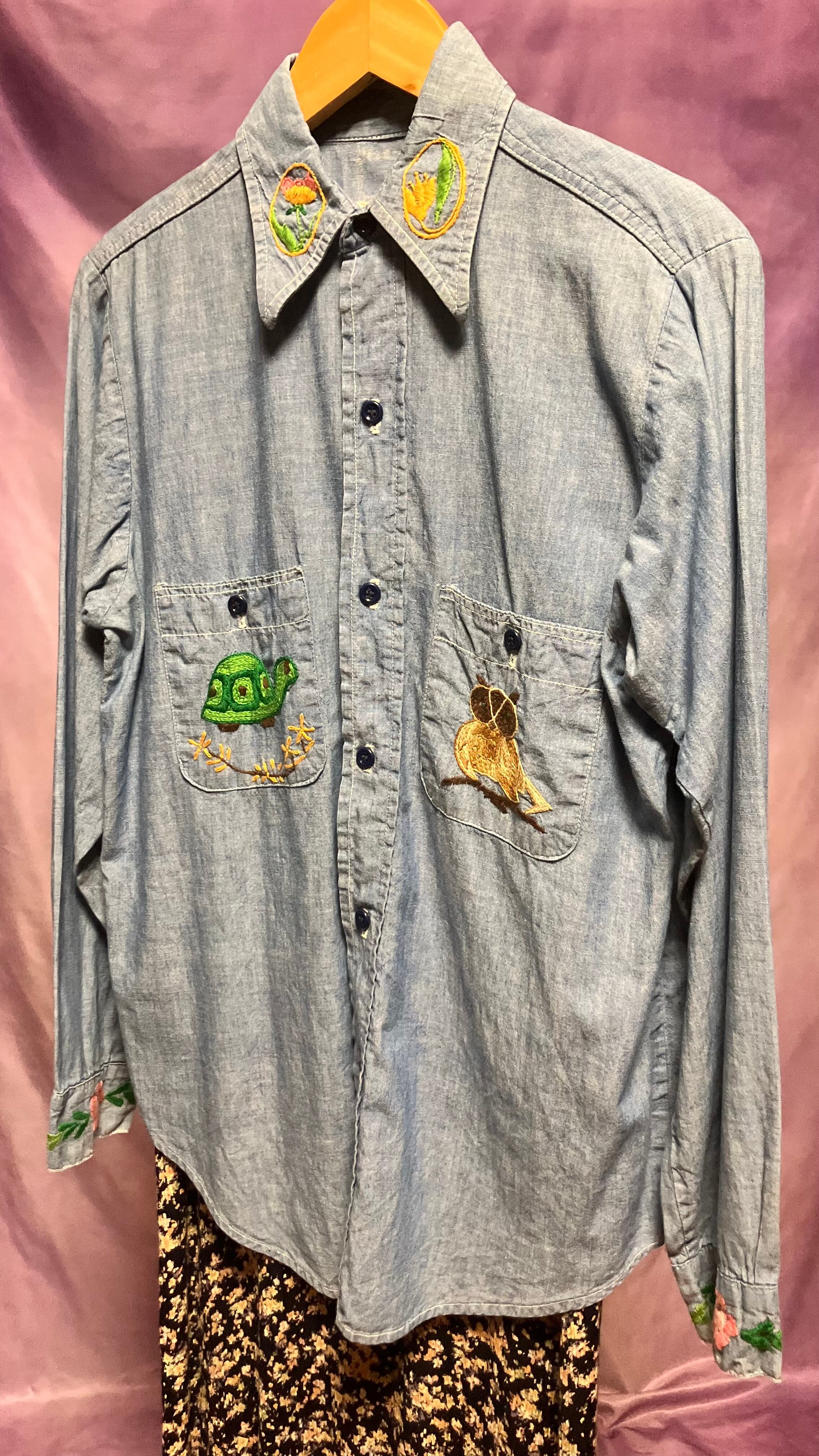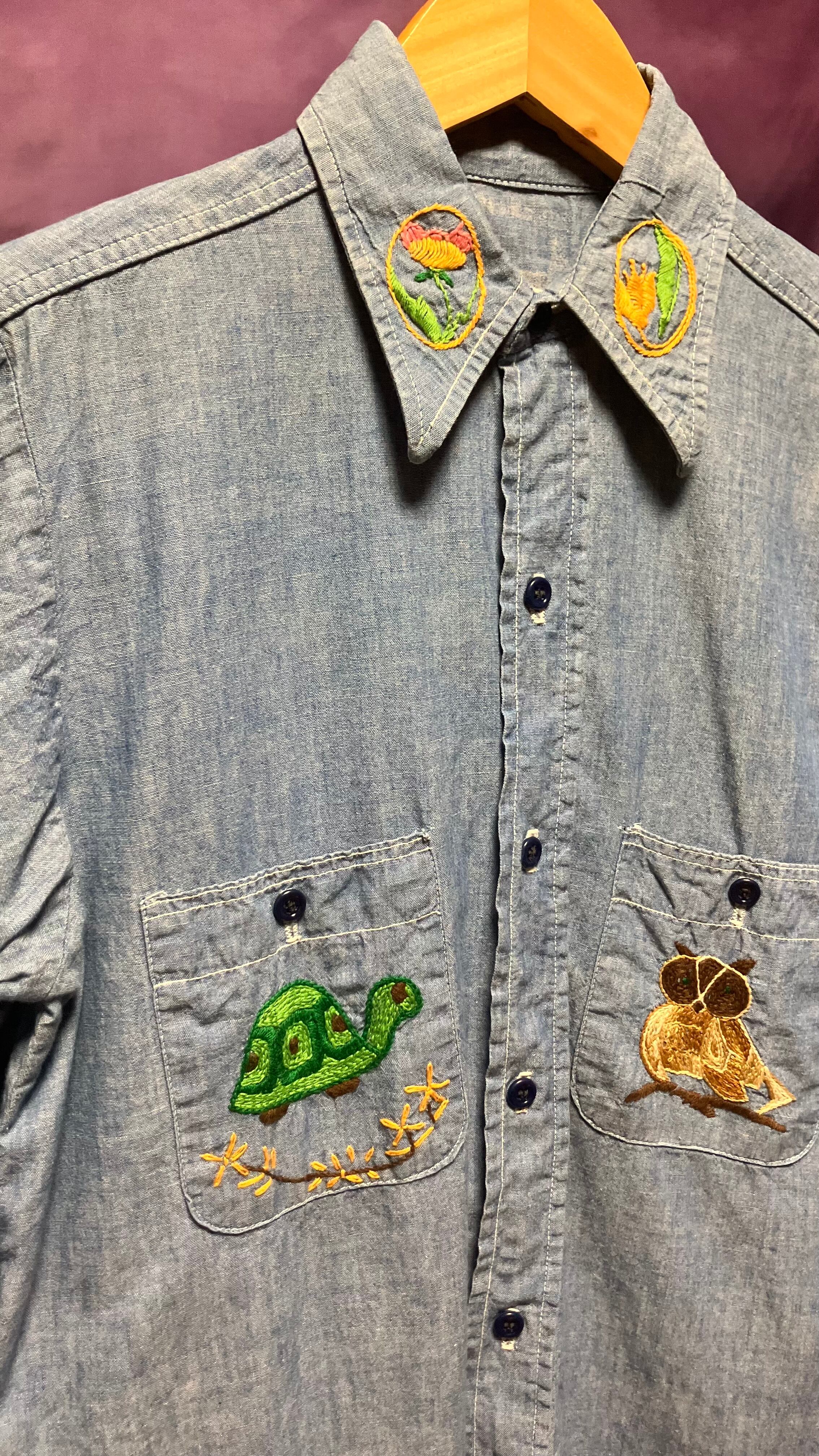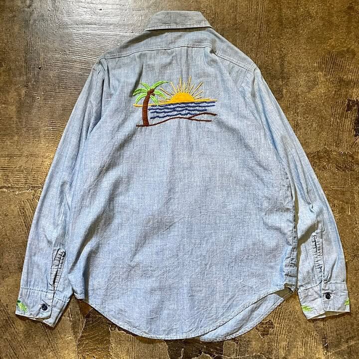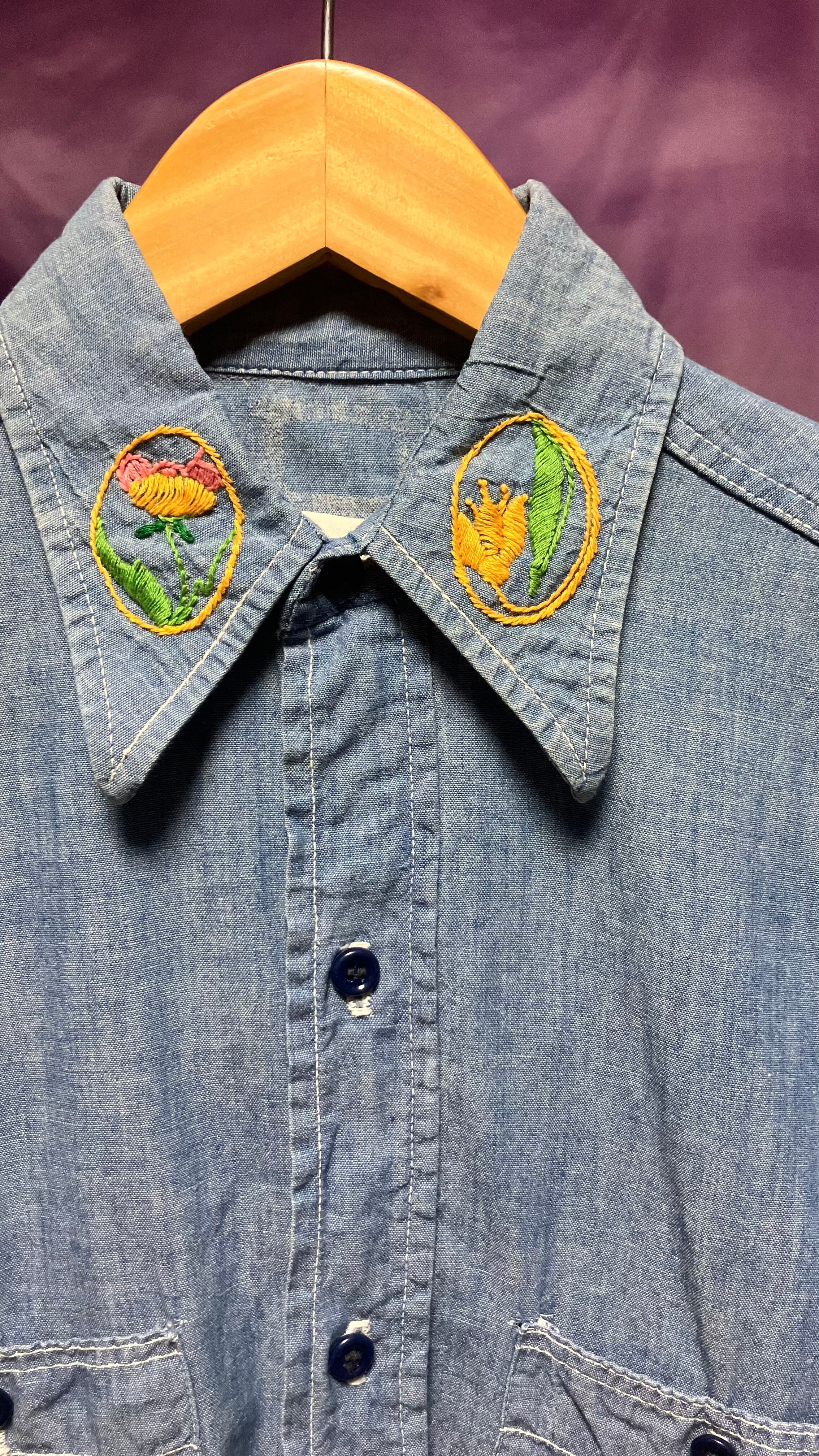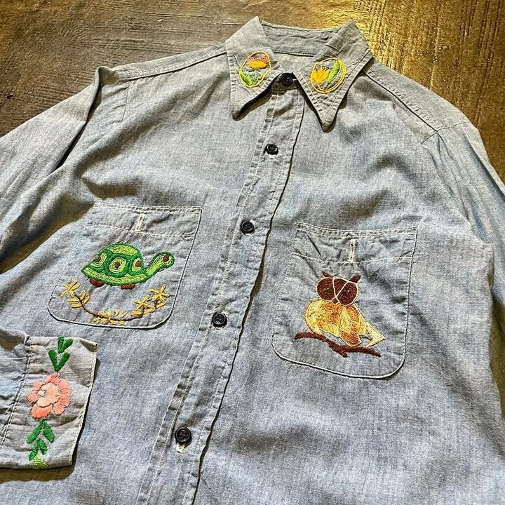 ~70's UNION MADE N・H・P hand embroidery chambray shirt