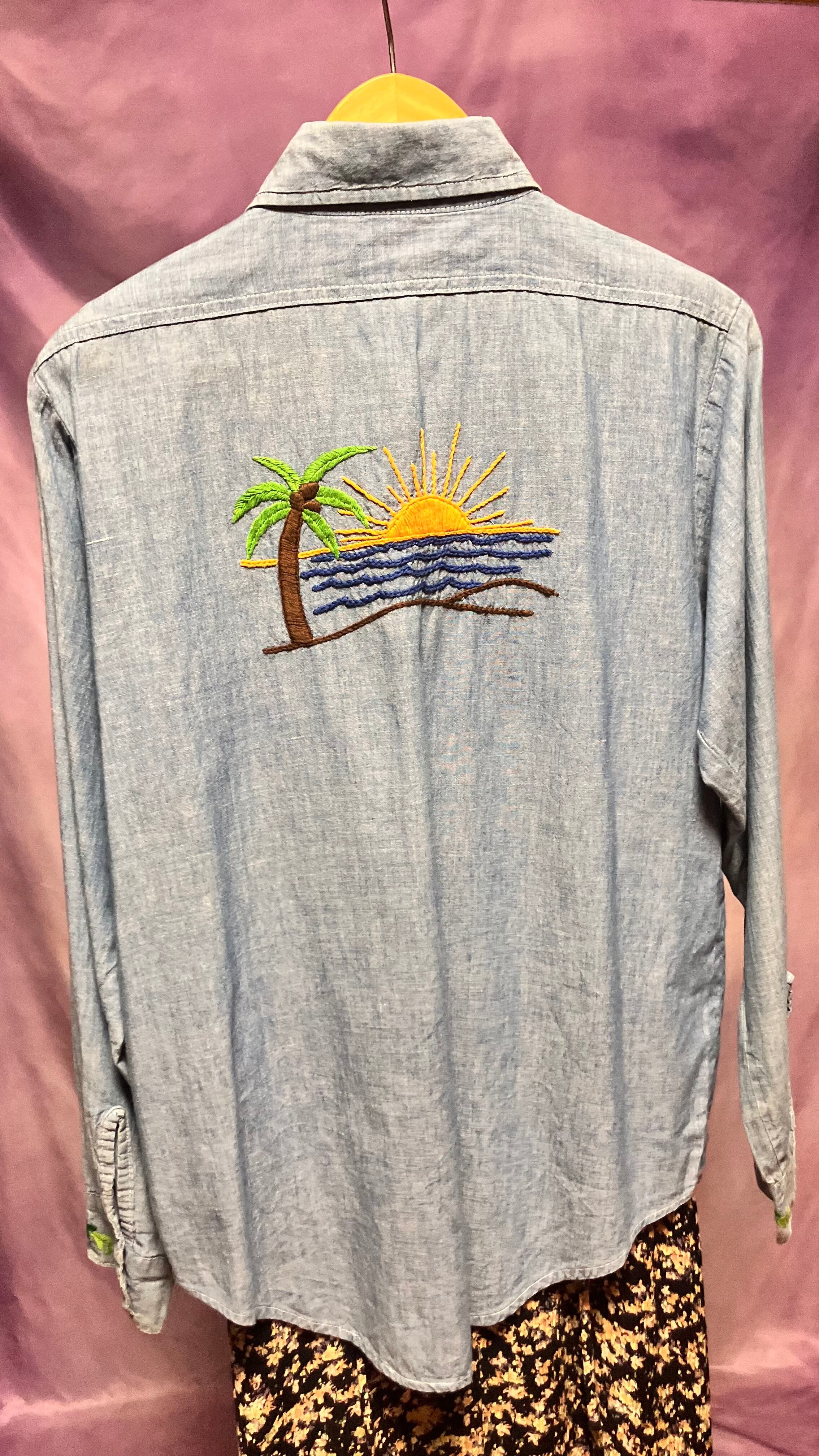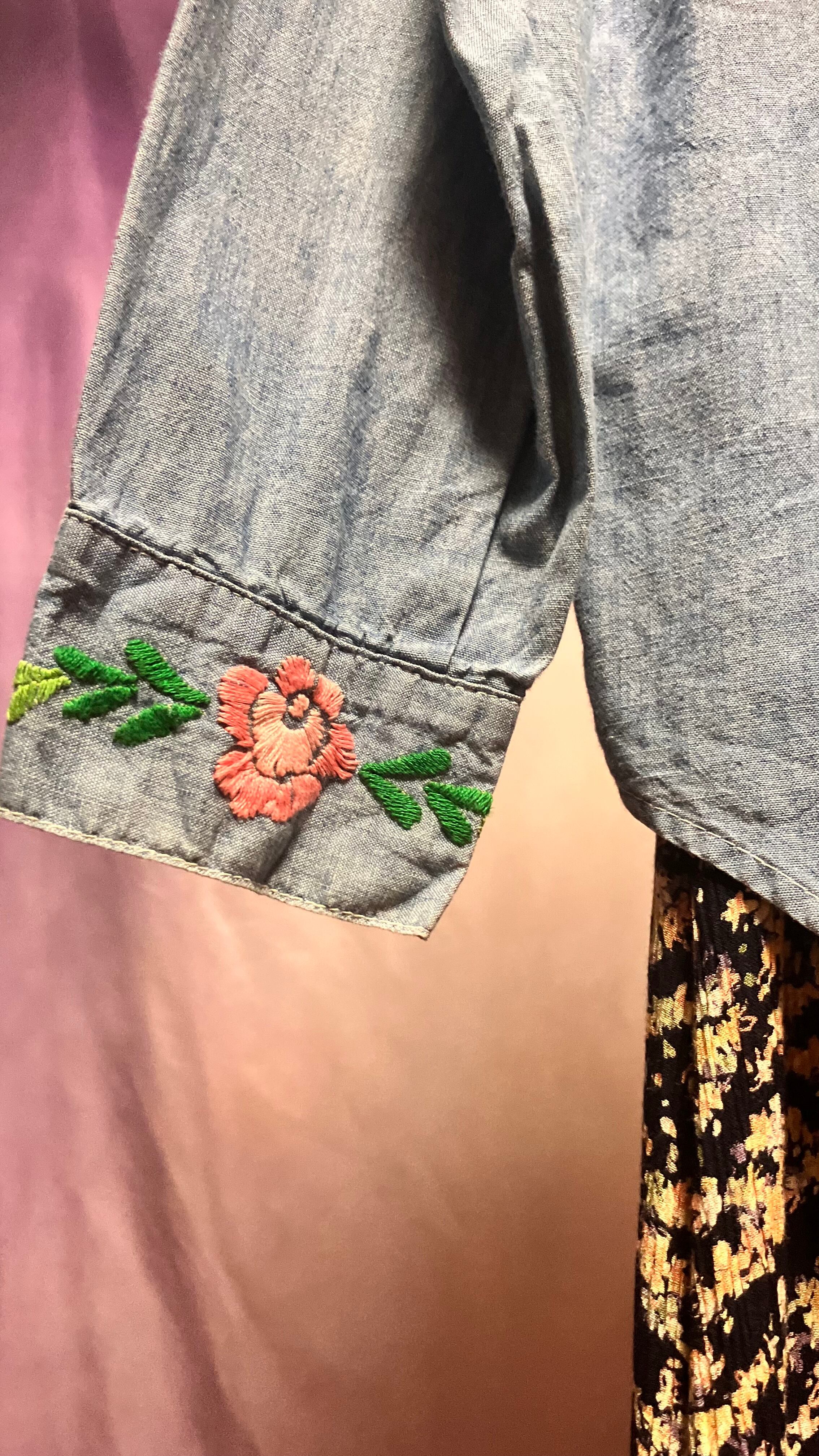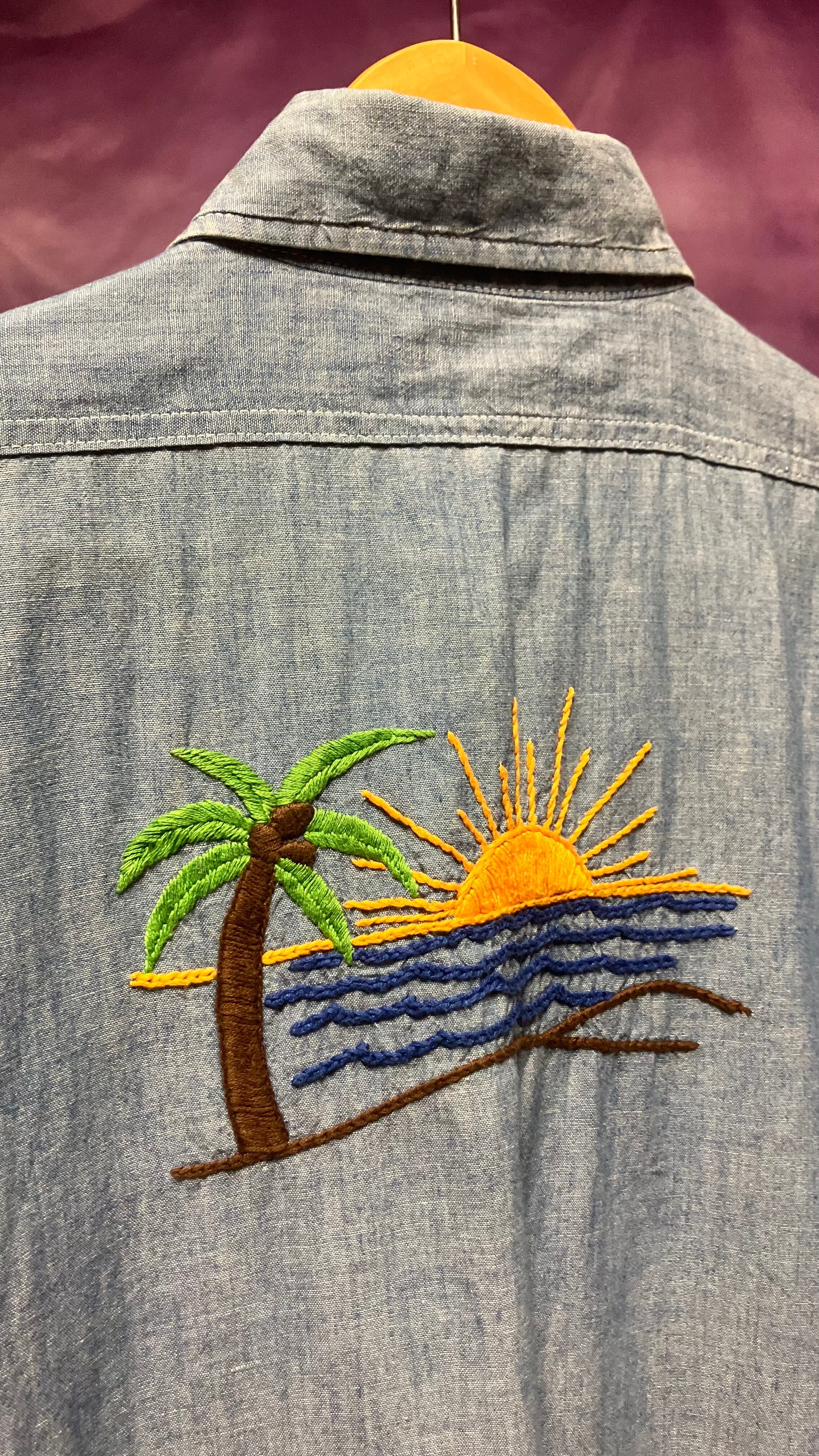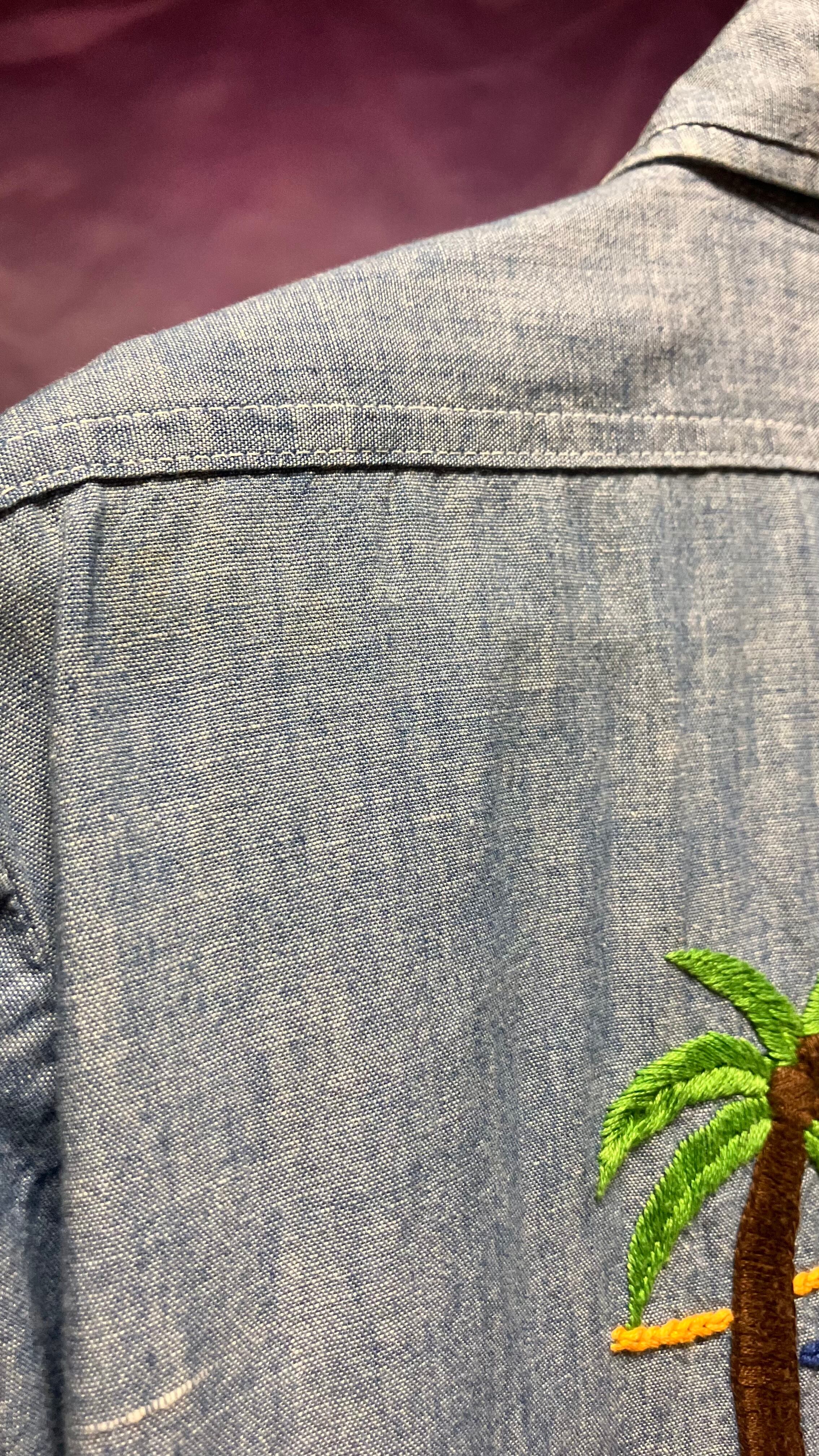 ~70's UNION MADE N・H・P hand embroidery chambray shirt