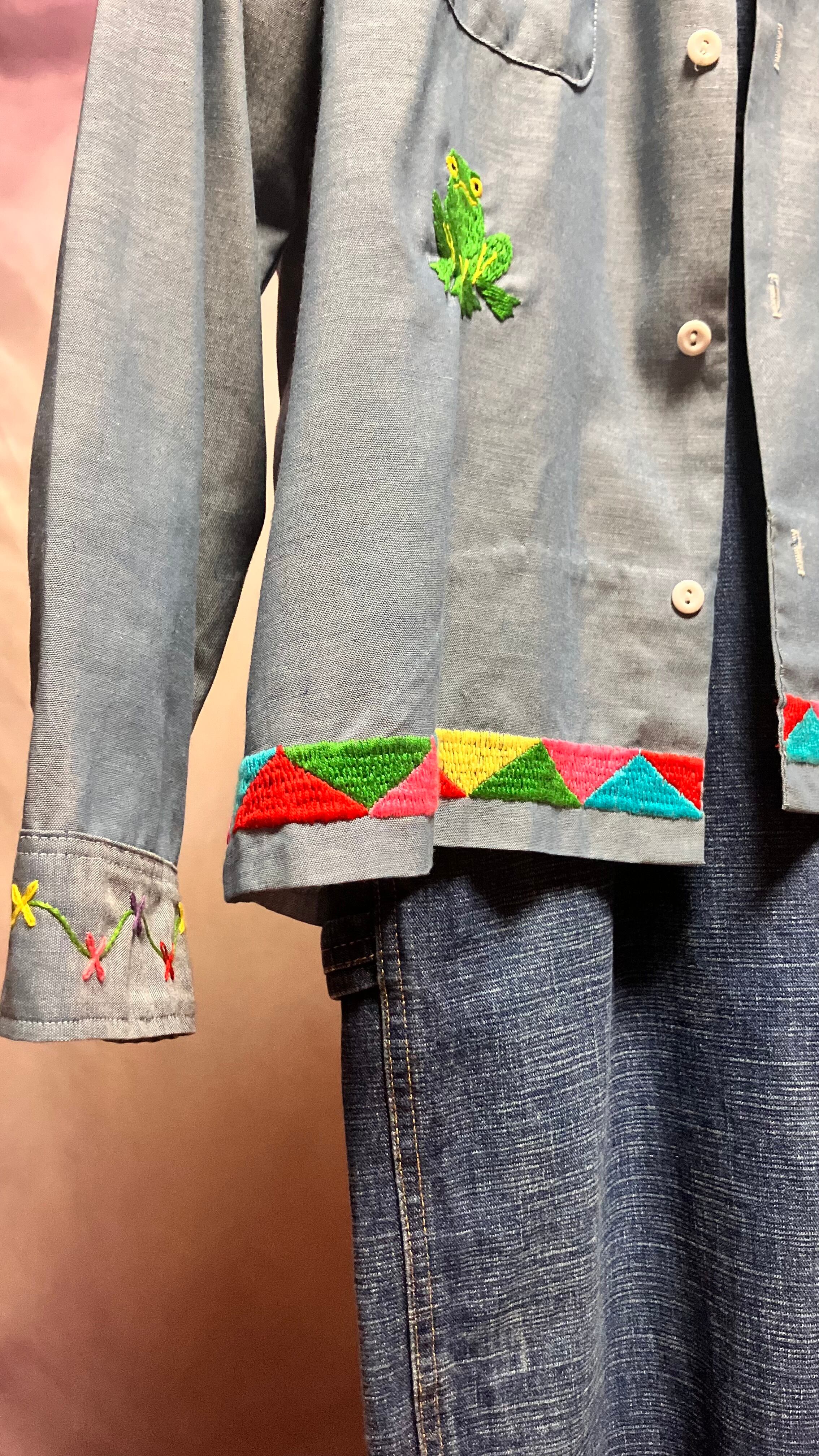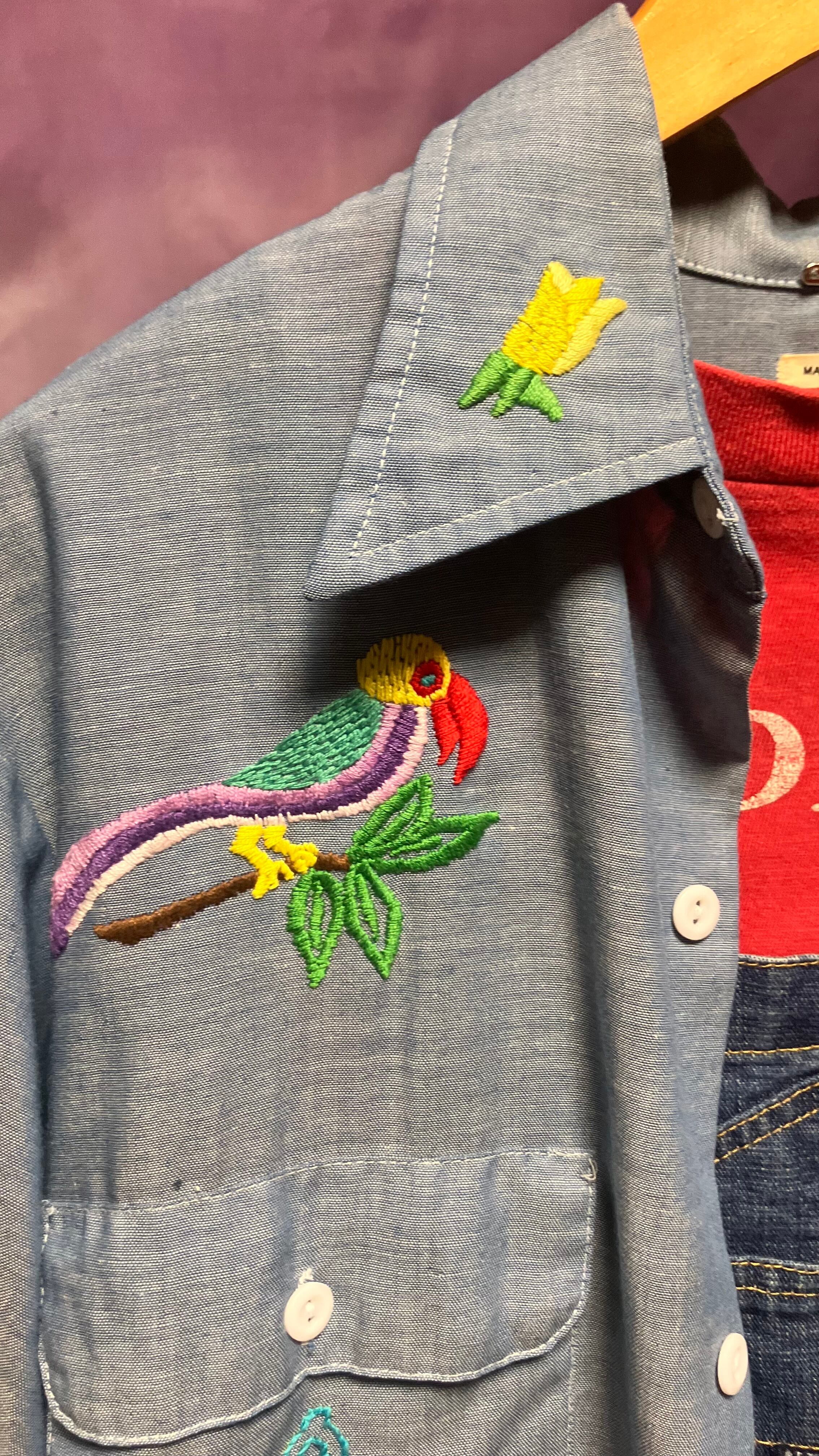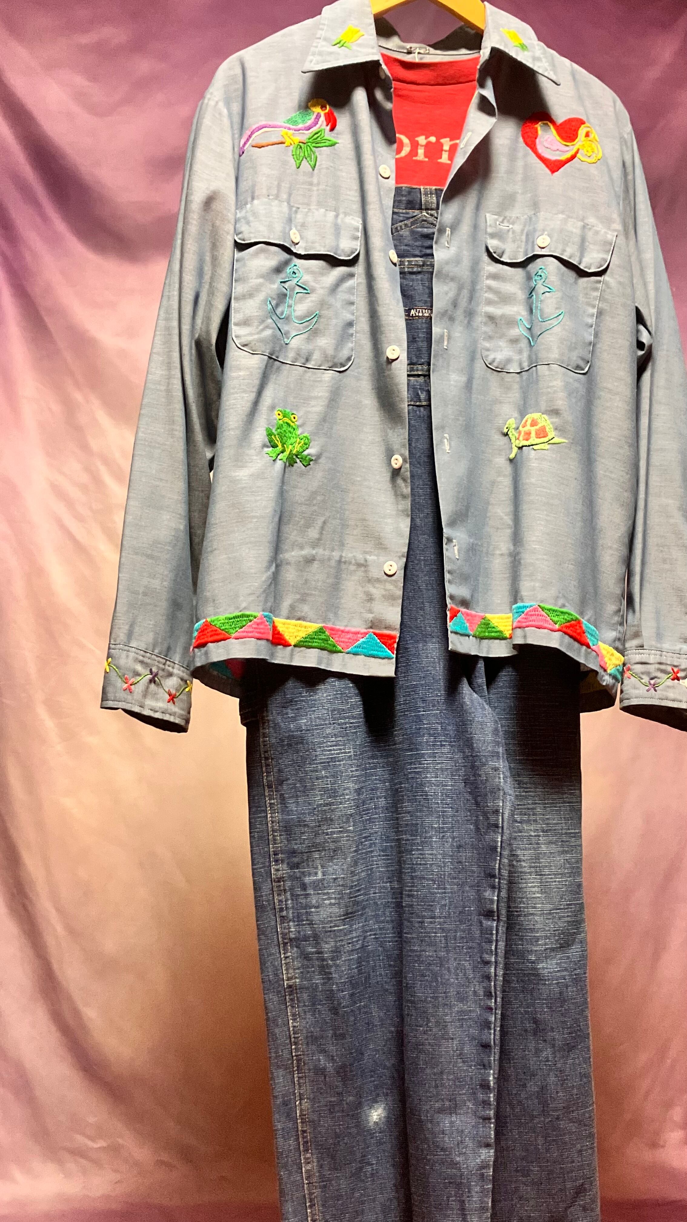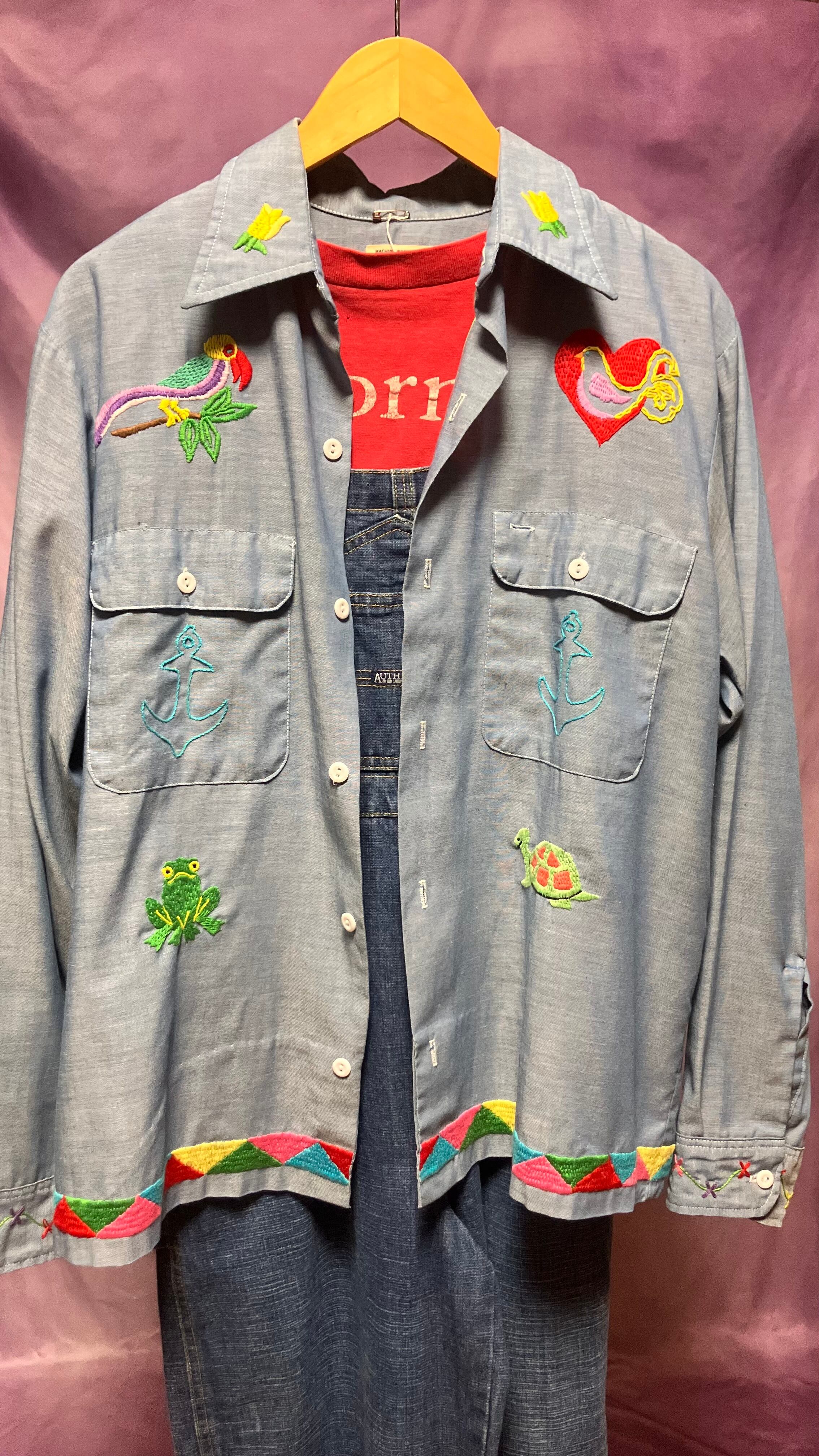 70's BIG MAC JCPenny hand embroidery chambray shirt