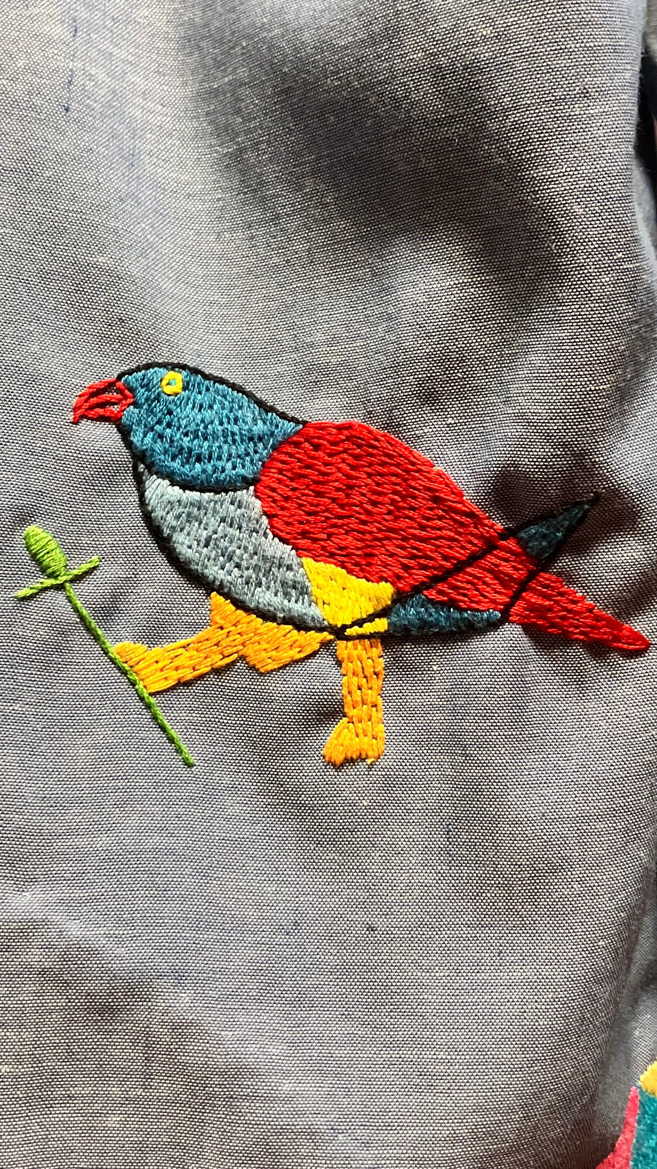 鳥好きさんが刺繍したのかな?亀やカエル、イカリのモチーフに加えて様々な鳥が登場してます。