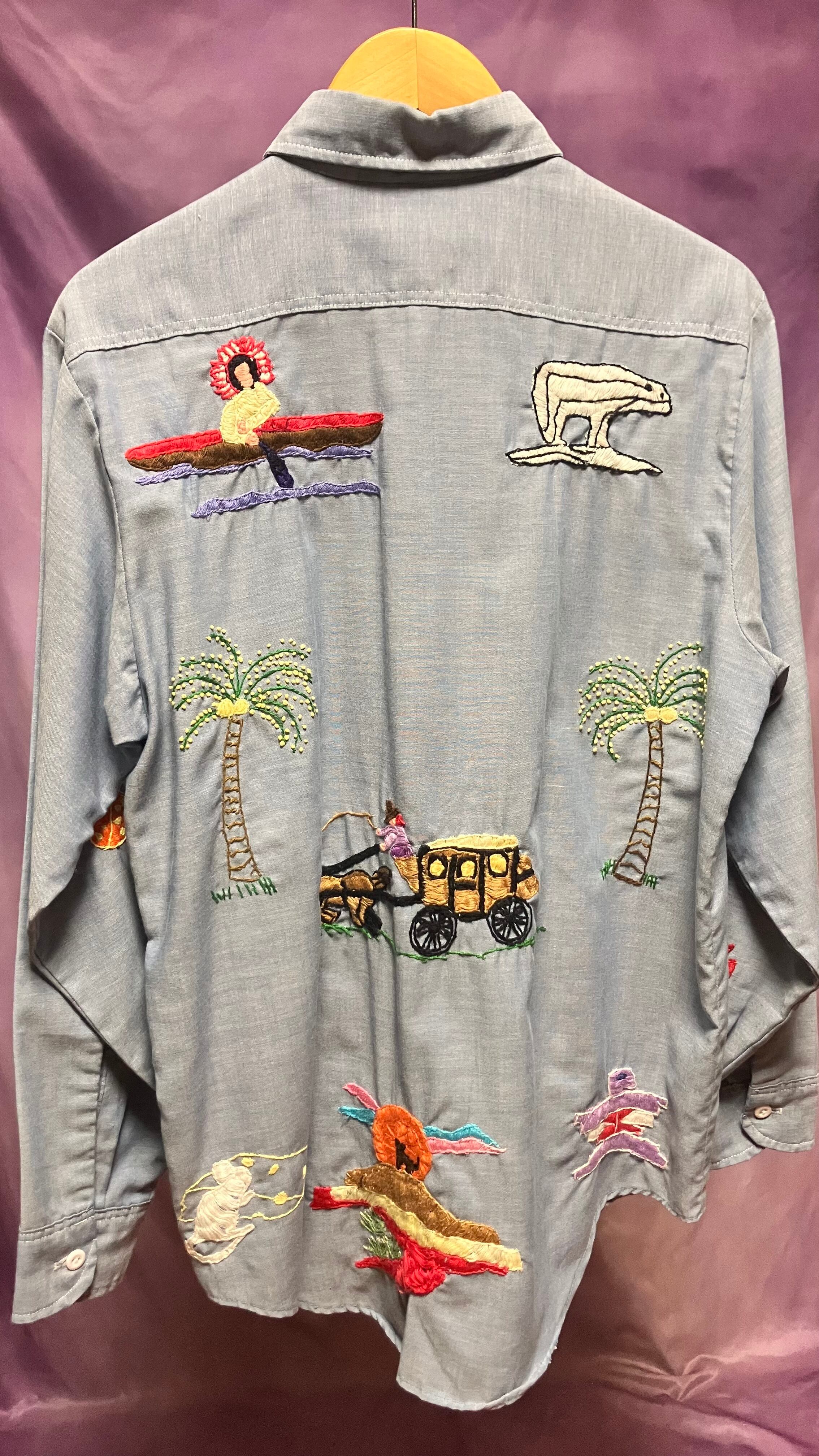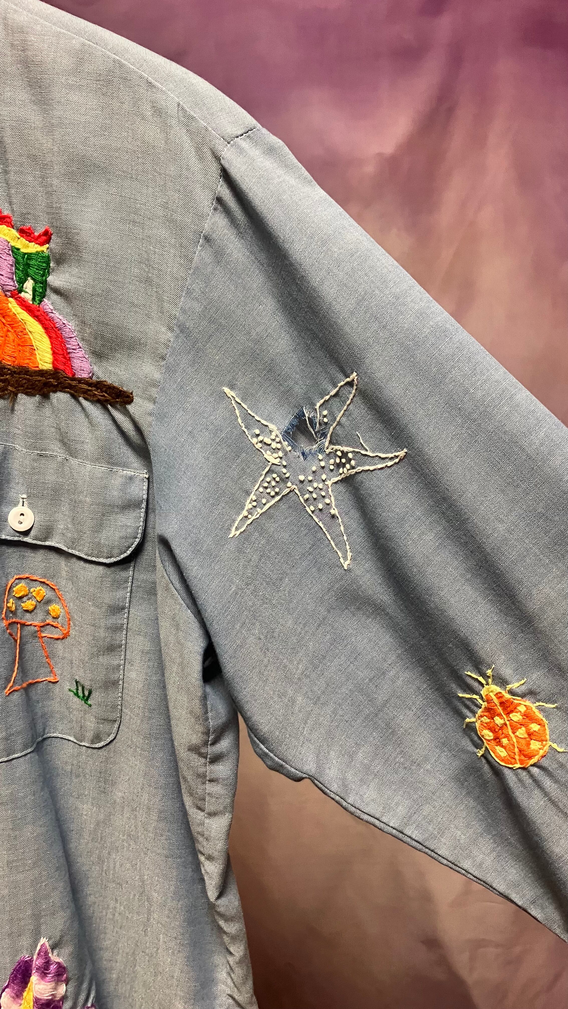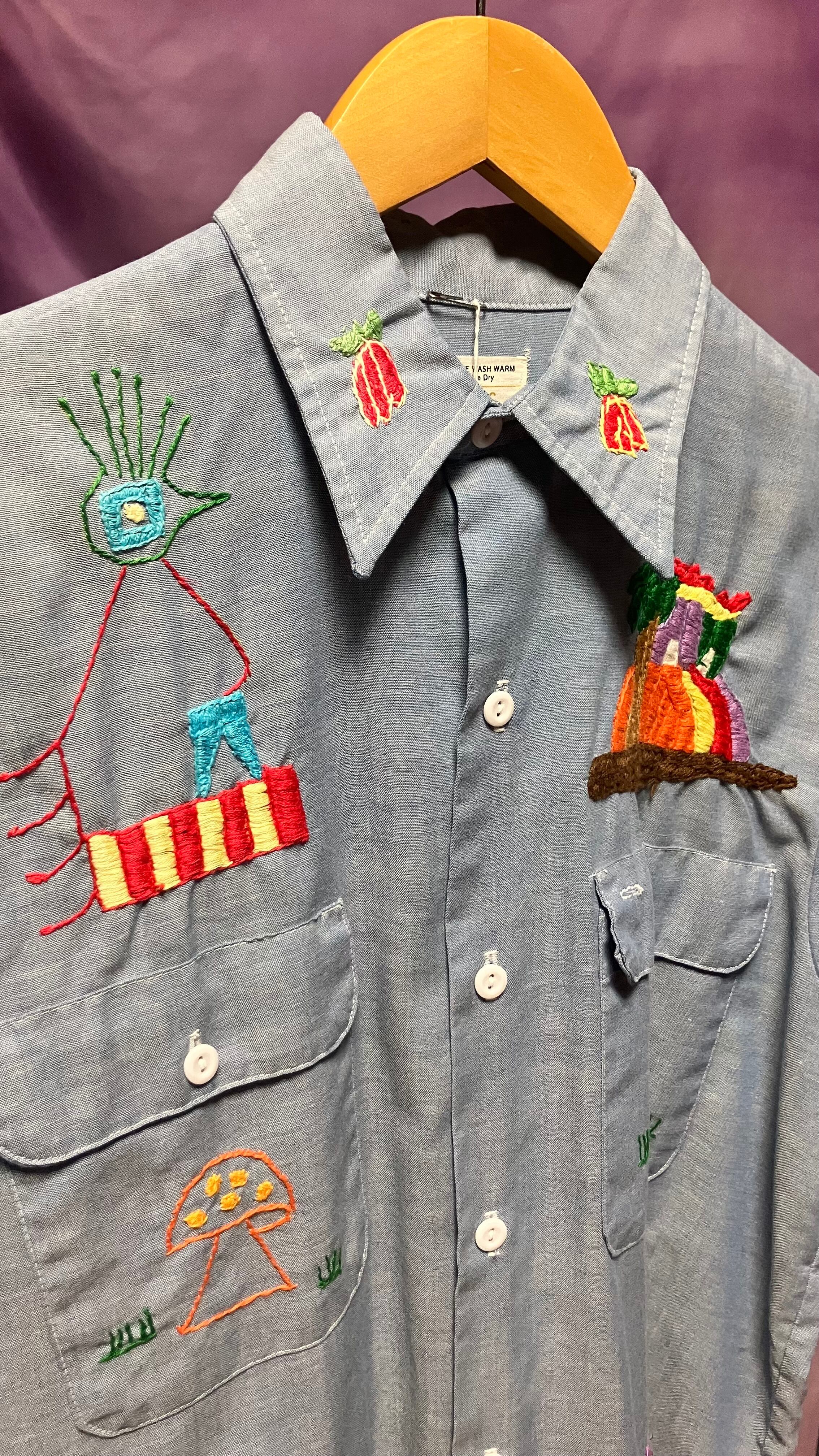 70's BIG MAC JCPenny hand embroidery chambray shirt