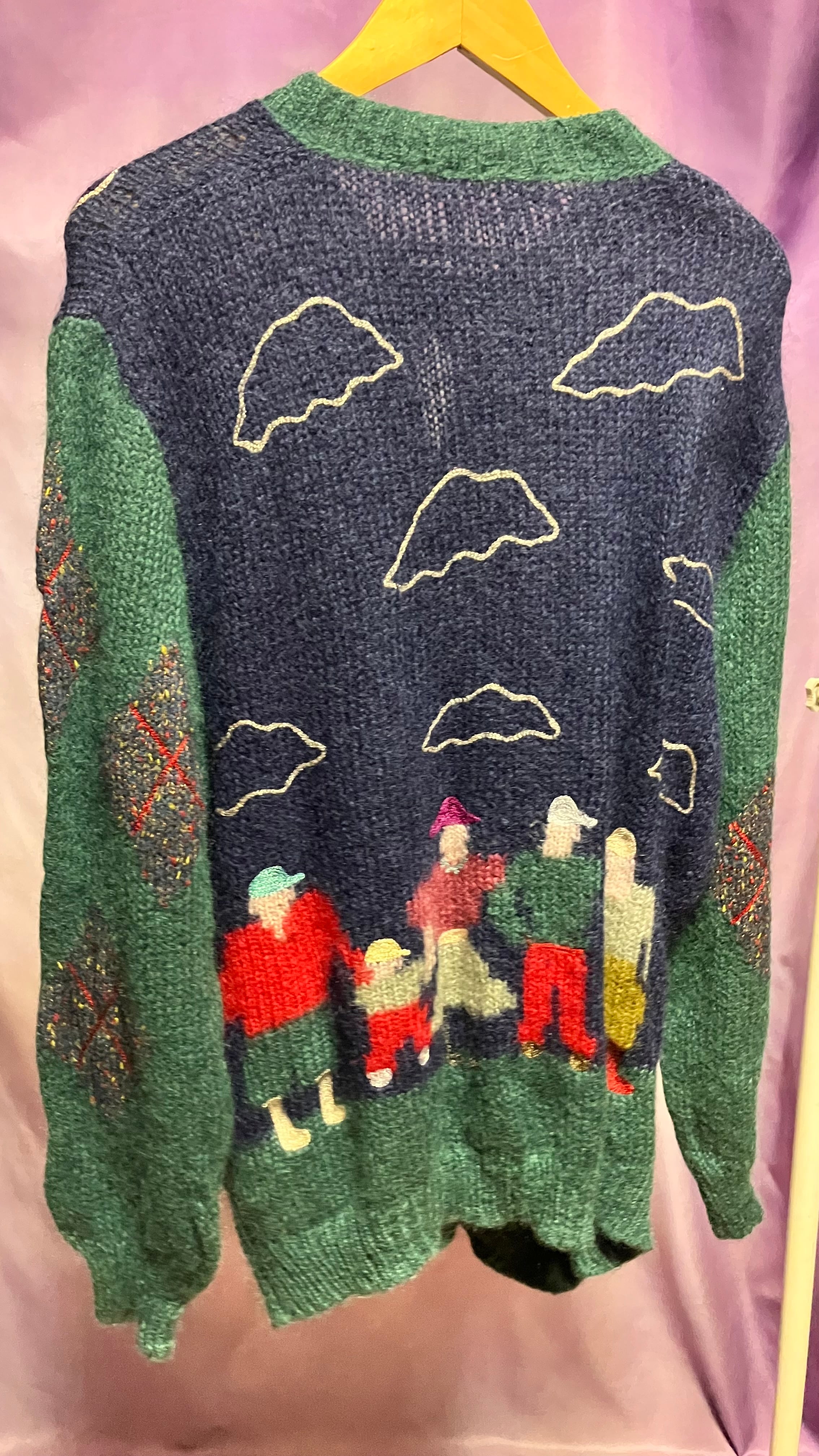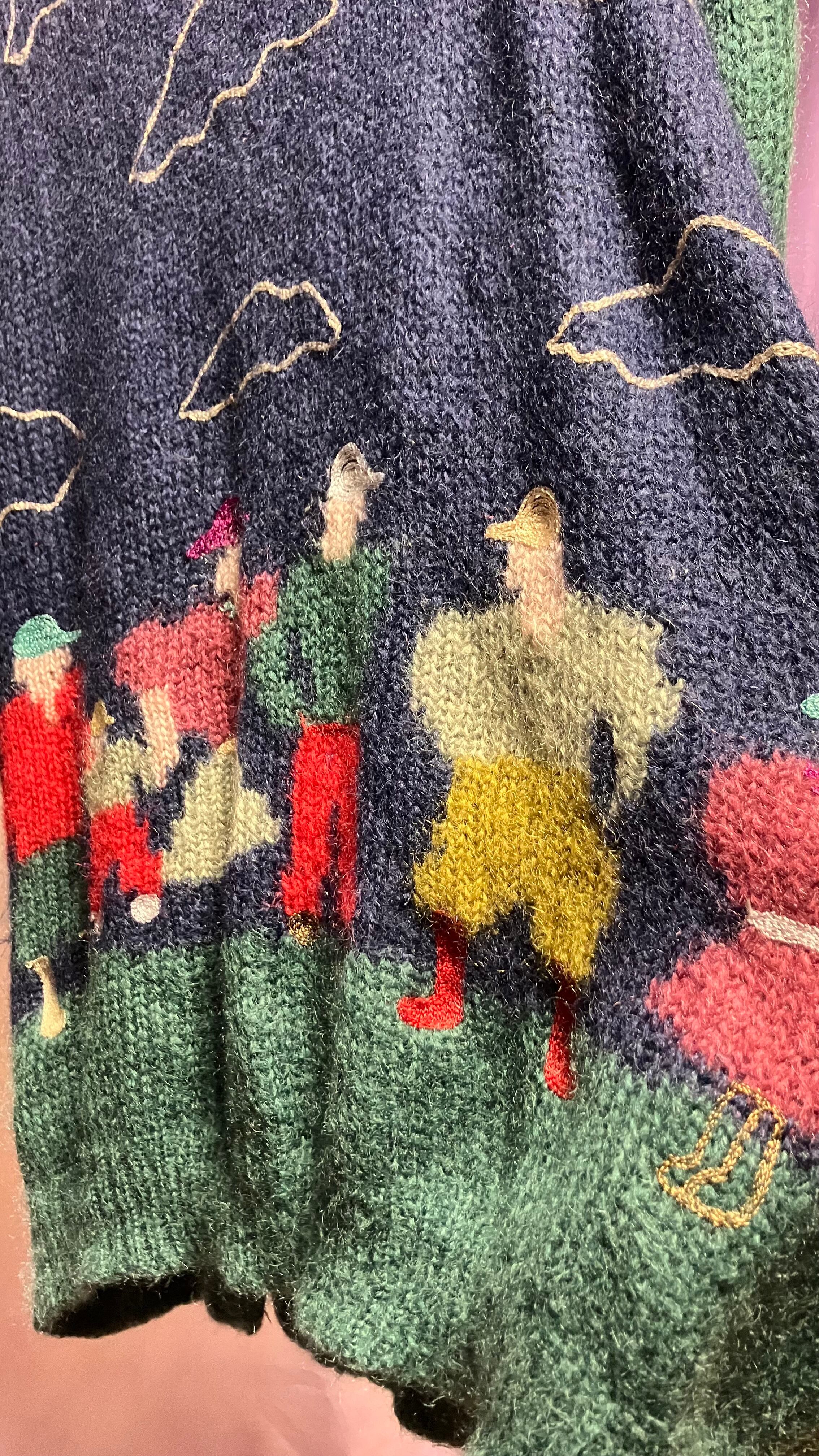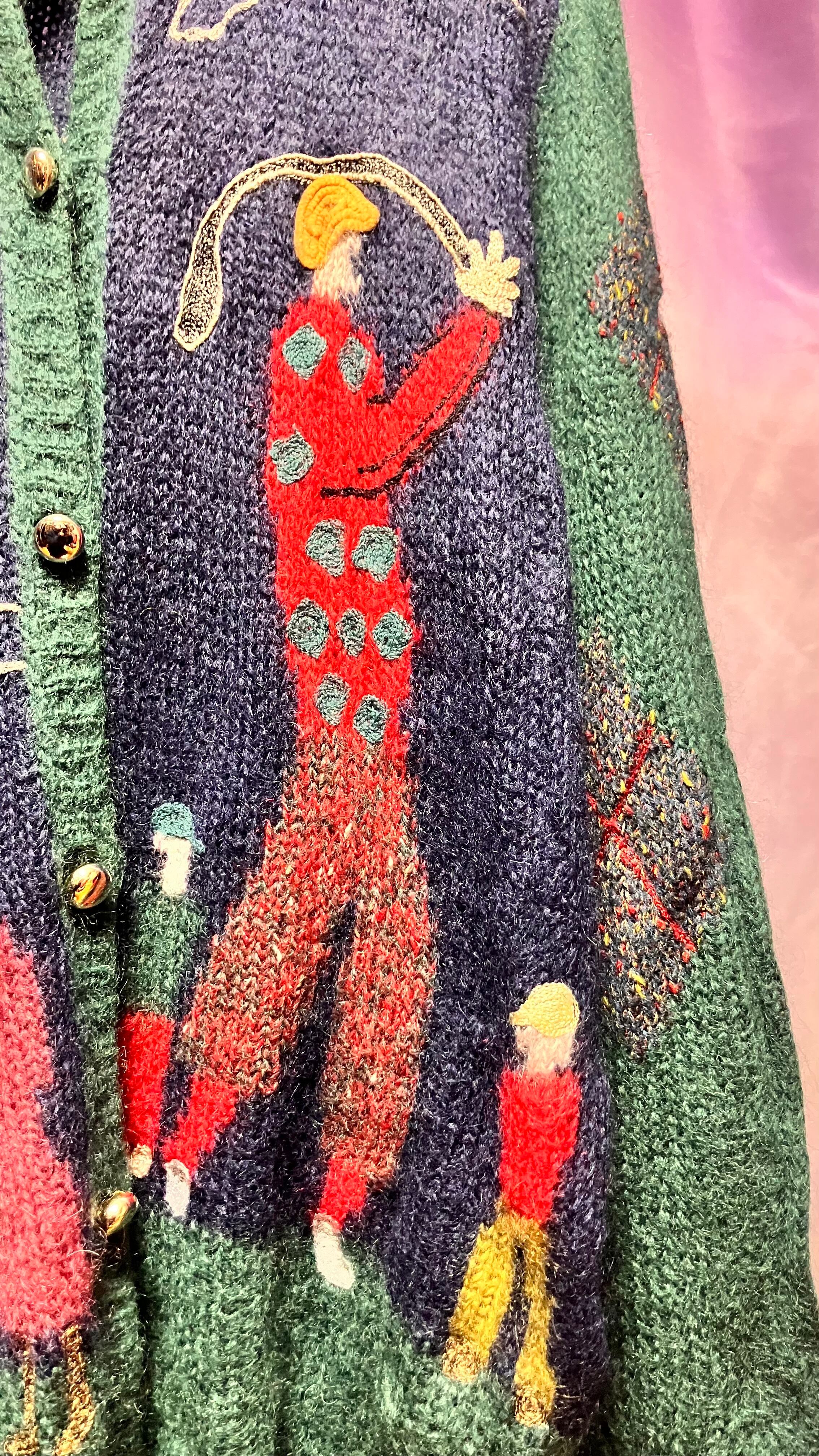 golfer people motif mohair knit cardigan